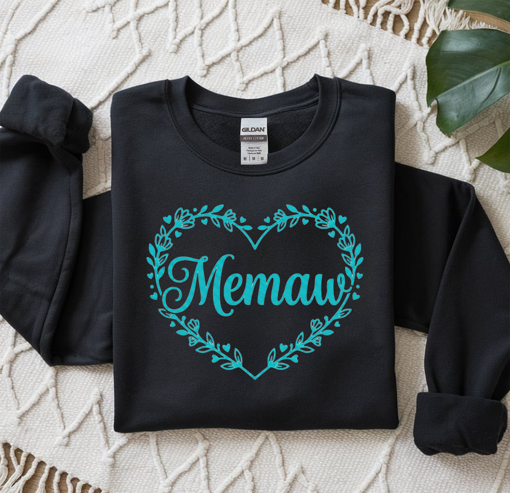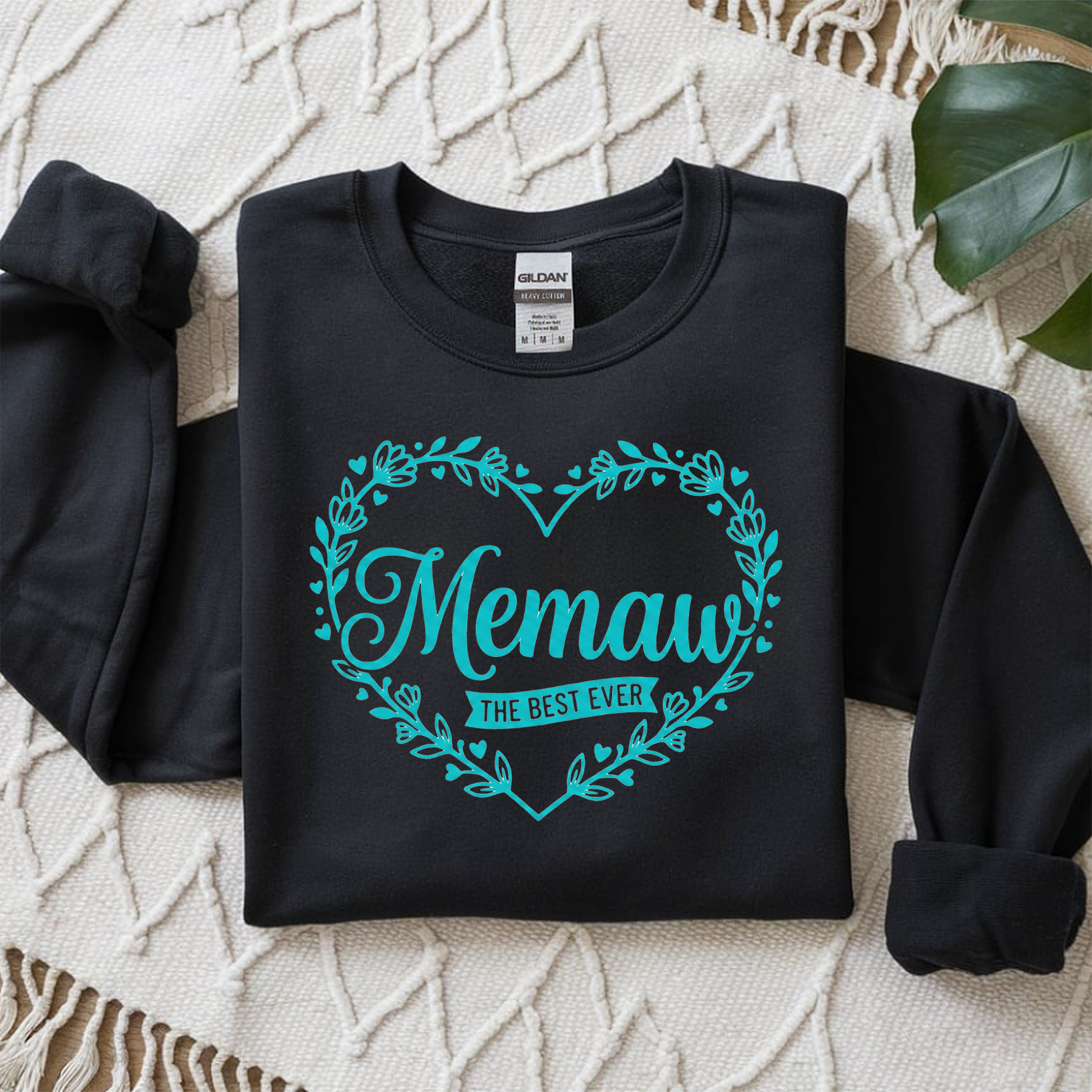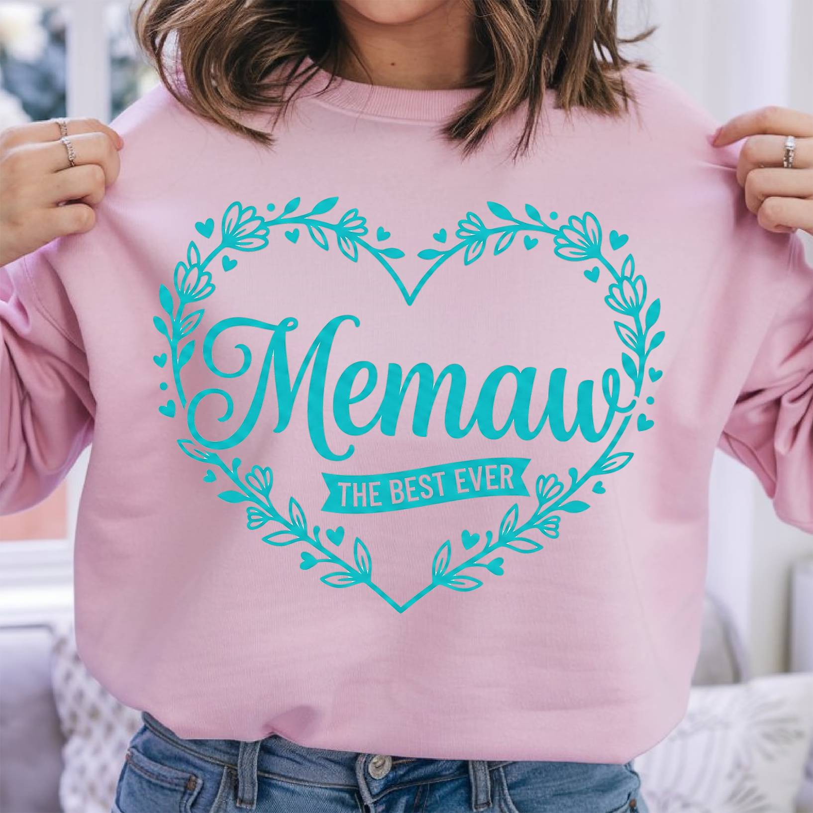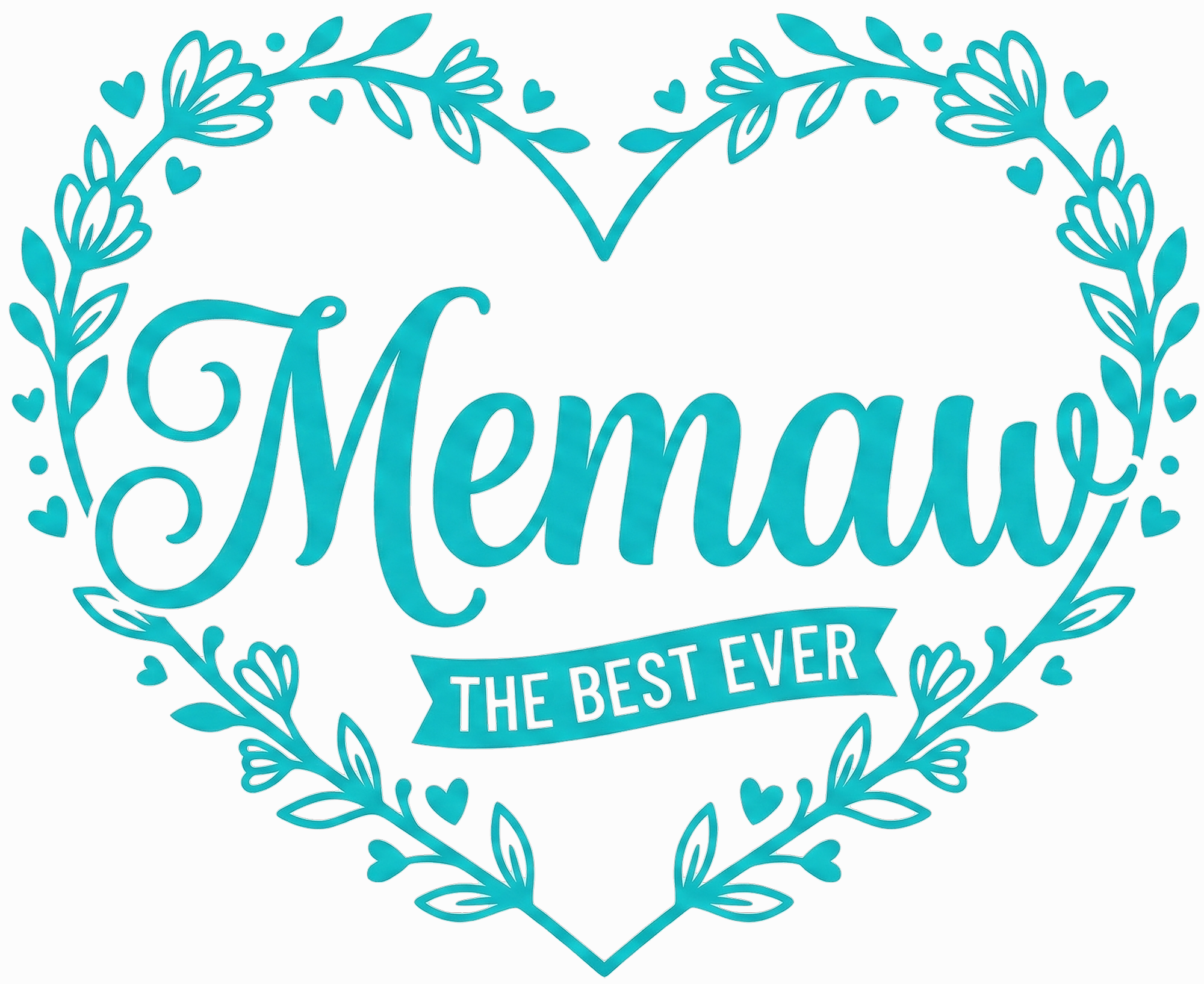 🌸 Memaw: The Best Ever – Turquoise Heart DTF Transfer