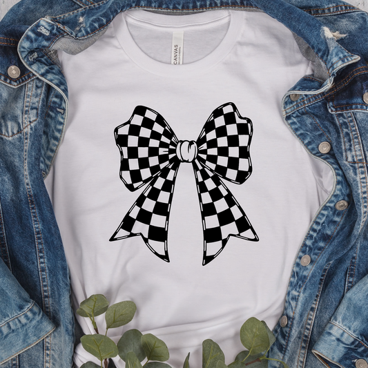 Cute Checkered Flag Coquette Bow DTF Heat Transfer