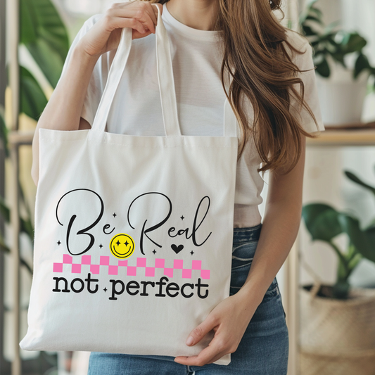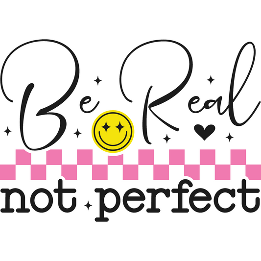 Be Real Not Perfect DTF Heat Transfer | Retro Smiley Face & Checkerboard Design