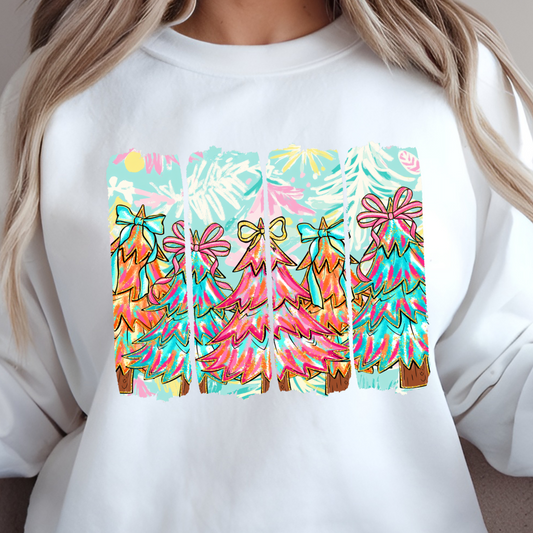 Preppy Colorful Christmas Trees DTF Heat Transfer