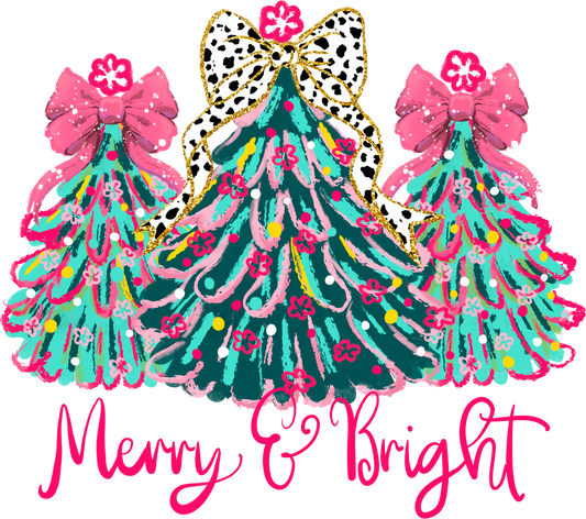 Merry & Bright Christmas Trees DTF Heat Transfer
