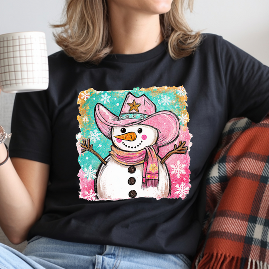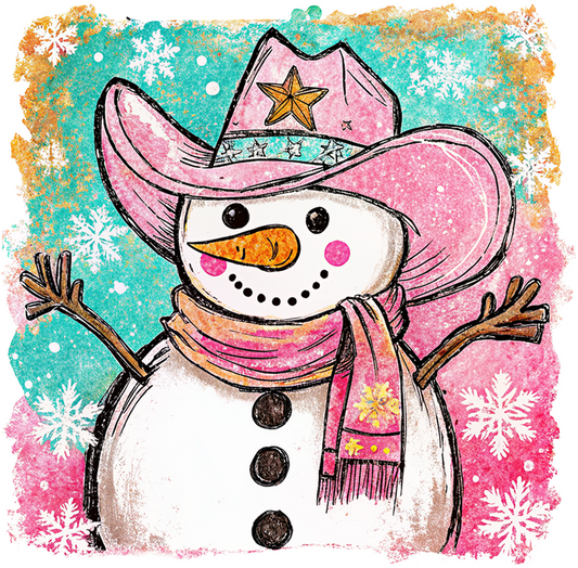 "Howdy Holidays" Pink Cowboy Snowman DTF Heat Transfer | Western Christmas