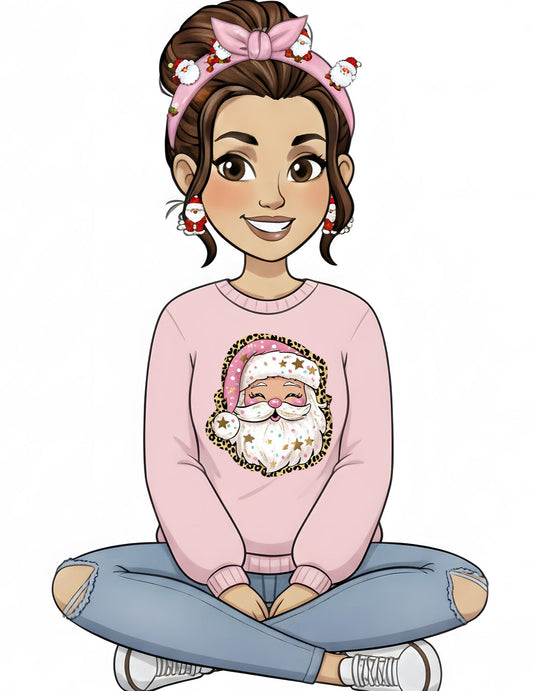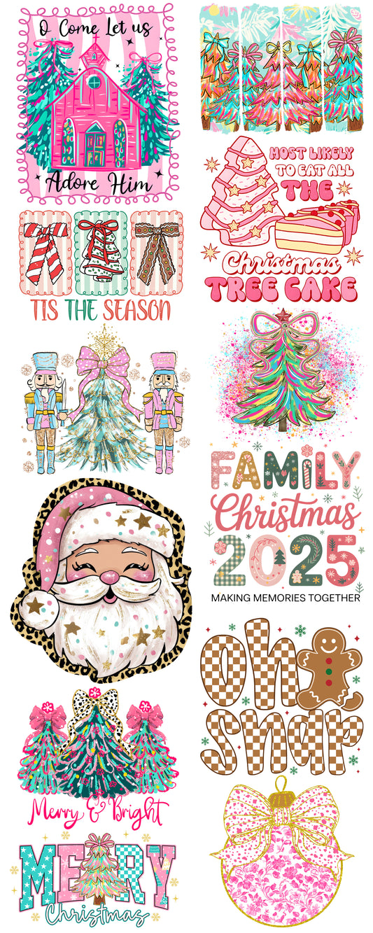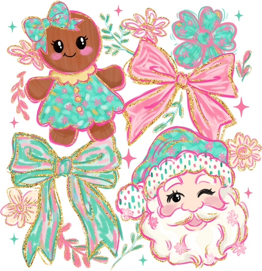Preppy Pink Christmas DTF Heat Transfer Sheet | Glitter Santa & Gingerbread Girl