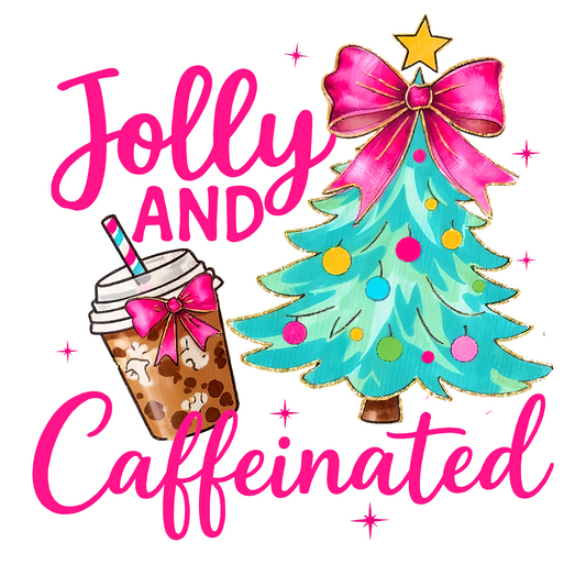 "Jolly & Caffeinated" Pink Christmas DTF Heat Transfer | Holiday Coffee & Boba