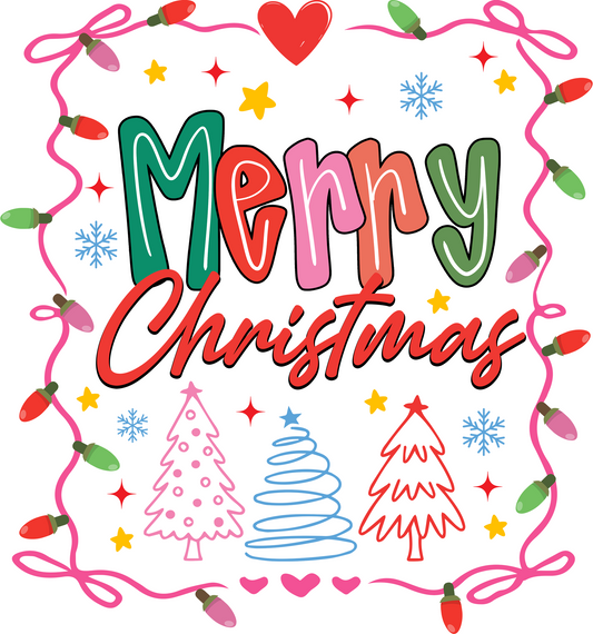 Merry Christmas Festive Bows And Lights DTF Heat Transfer