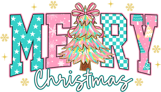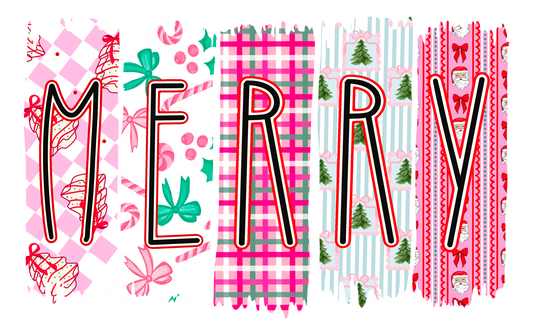 Preppy Pink "Merry" Christmas DTF Heat Transfer | Holiday Pattern Design