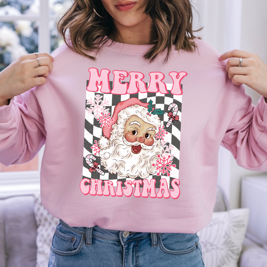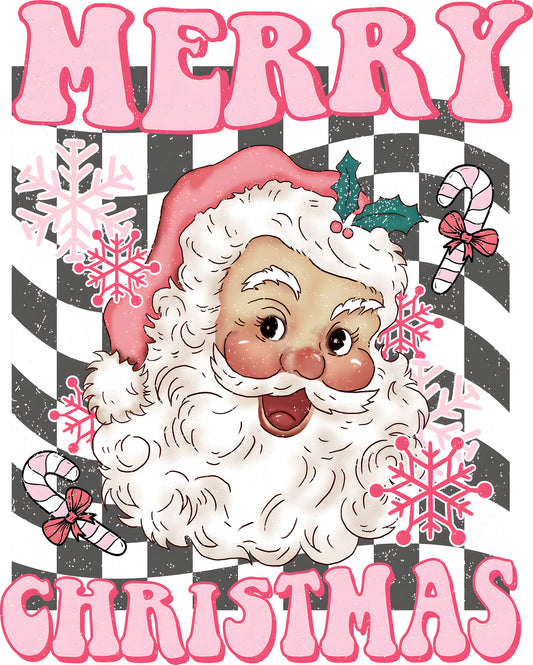 Retro Pink Santa DTF Heat Transfer | Groovy Checkerboard Christmas