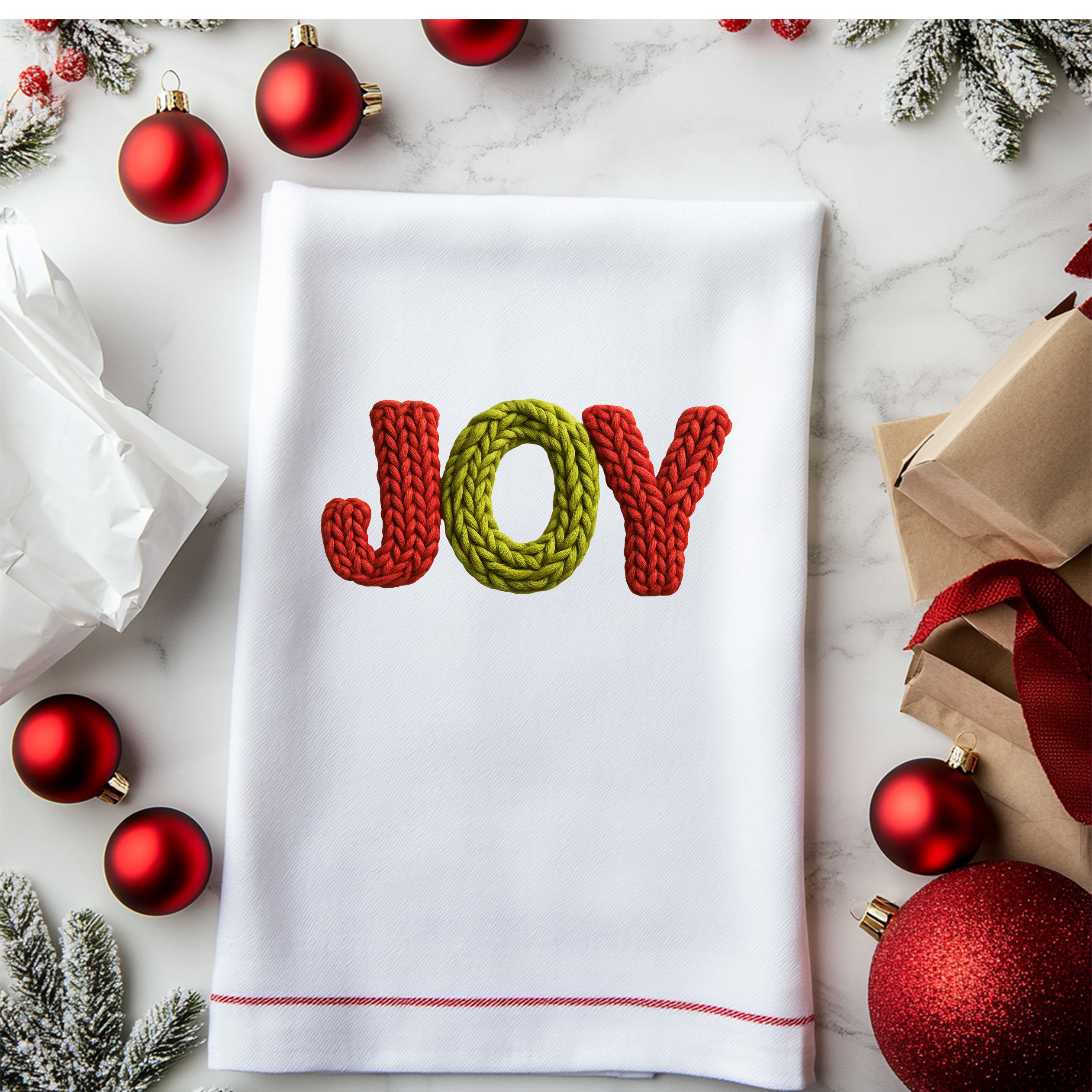 Add a touch of handmade warmth to your holiday creations! This delightful DTF transfer features the word "JOY" in a wonderfully chunky knit texture, with the "O" cleverly shaped like a festive wreath. It’s the perfect way to bring cozy, cheerful vibes to sweatshirts, pillows, and holiday tees in seconds.