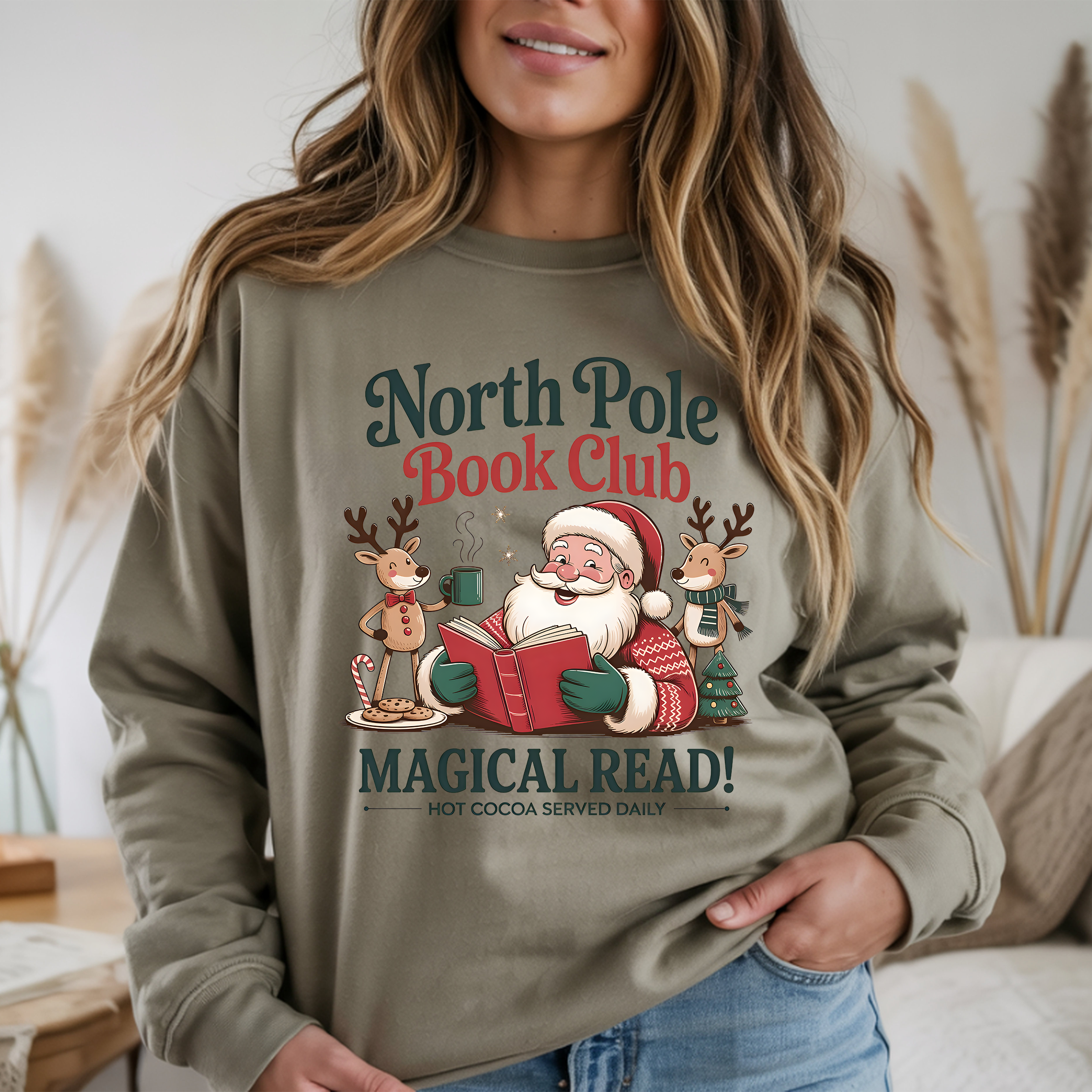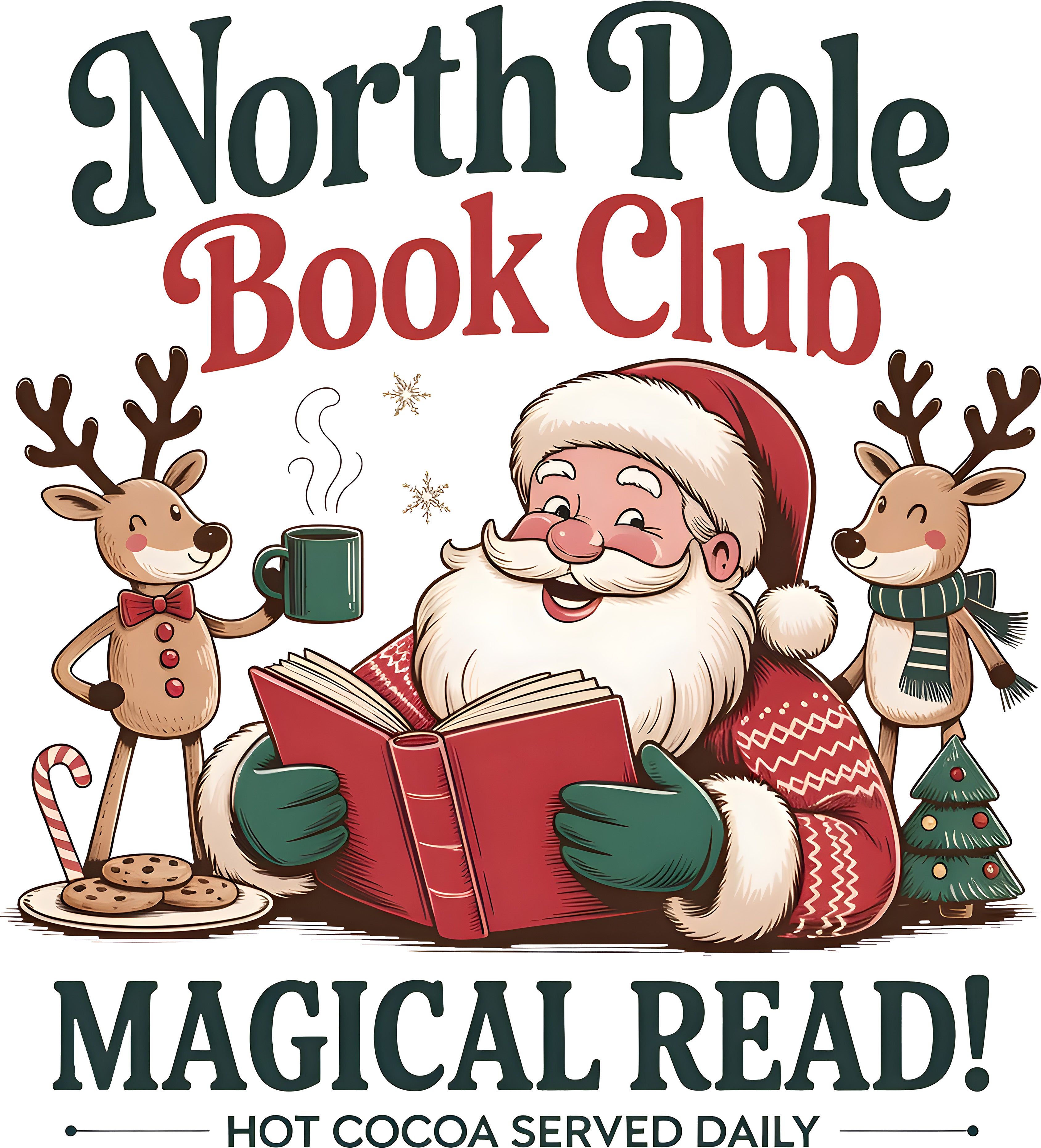 North Pole Book Club DTF Heat Transfer | Cozy Reading Santa