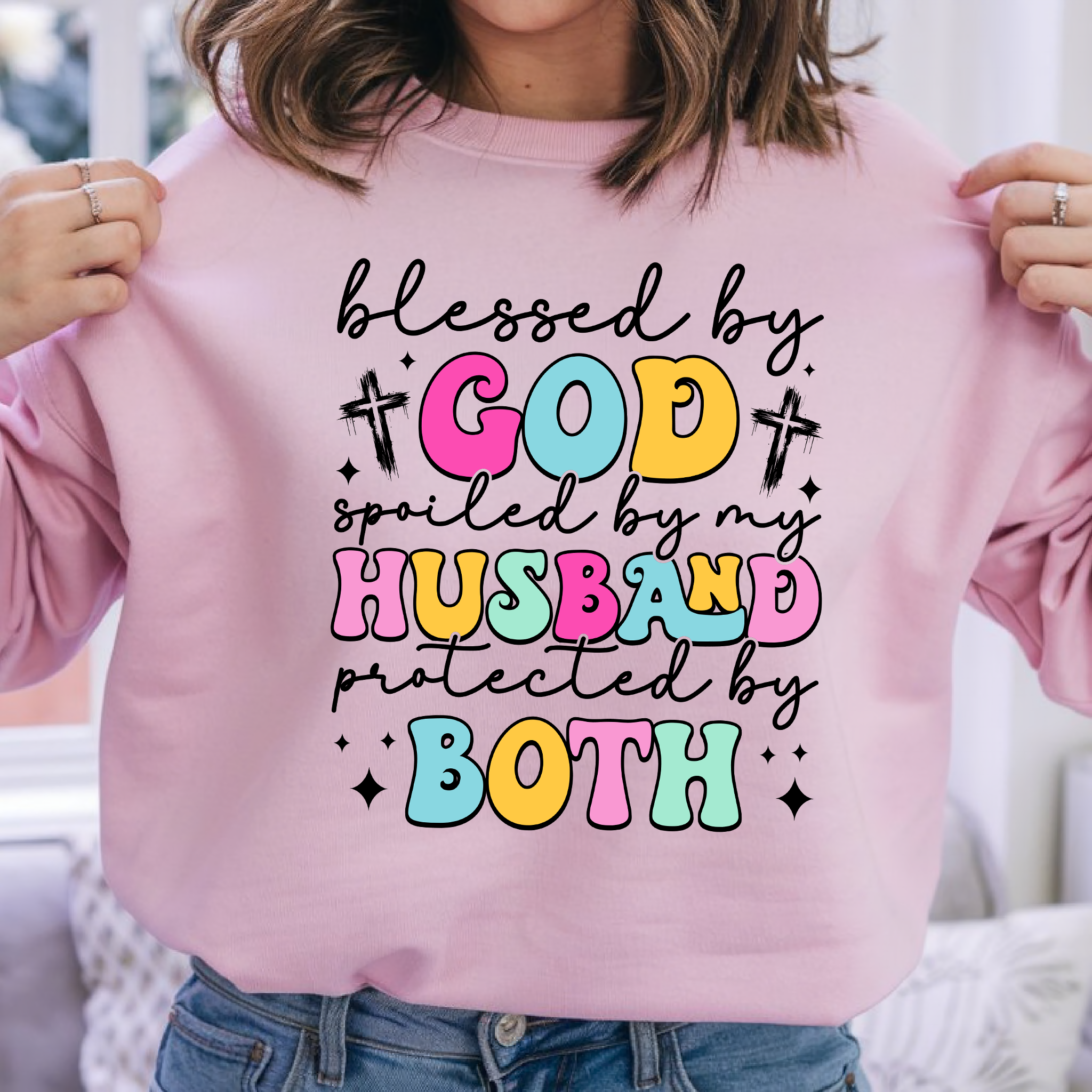 "Blessed by God Spoiled by my Husband" Retro DTF Heat Transfer | Fun Christian Wife Design