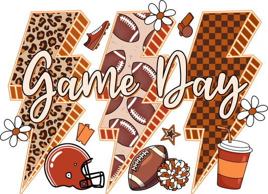 Retro Game Day Football DTF Heat Transfer | Leopard & Lightning Bolt Design