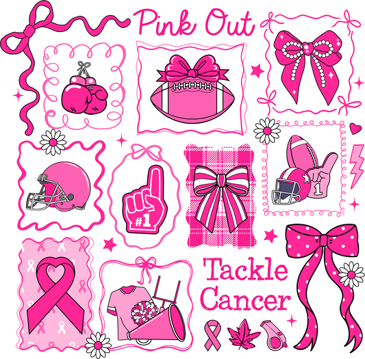 Pink Out Football & Cheer DTF Heat Transfer Sheet | Breast Cancer Awareness