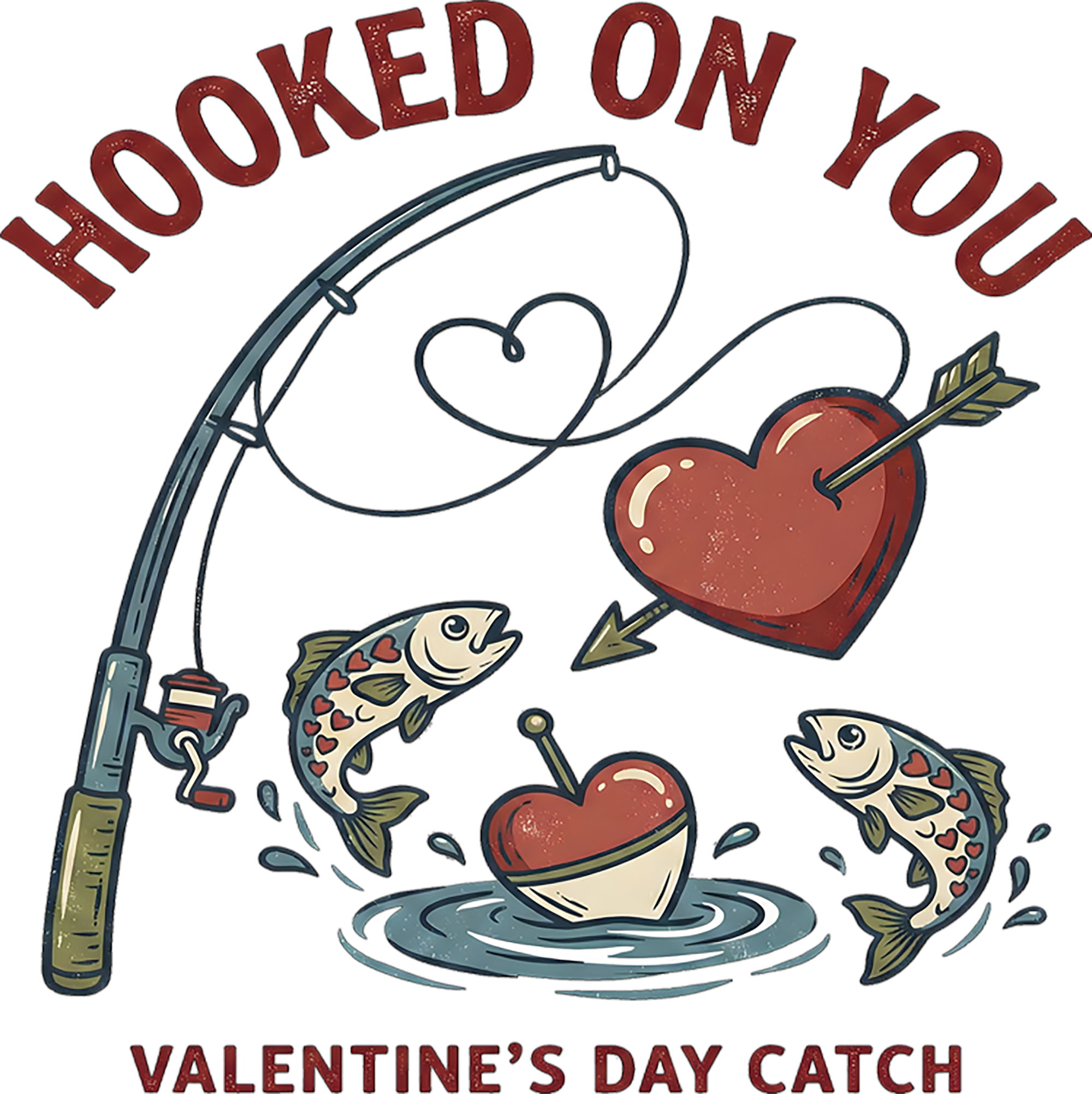 Are you looking for the perfect catch for your Valentine’s Day apparel collection? Look no further! This "Hooked On You" design is totally off the hook! Featuring a vintage-style fishing rod, an adorable heart-shaped bobber, and the cutest fish in the sea, this transfer is guaranteed to make a splash.