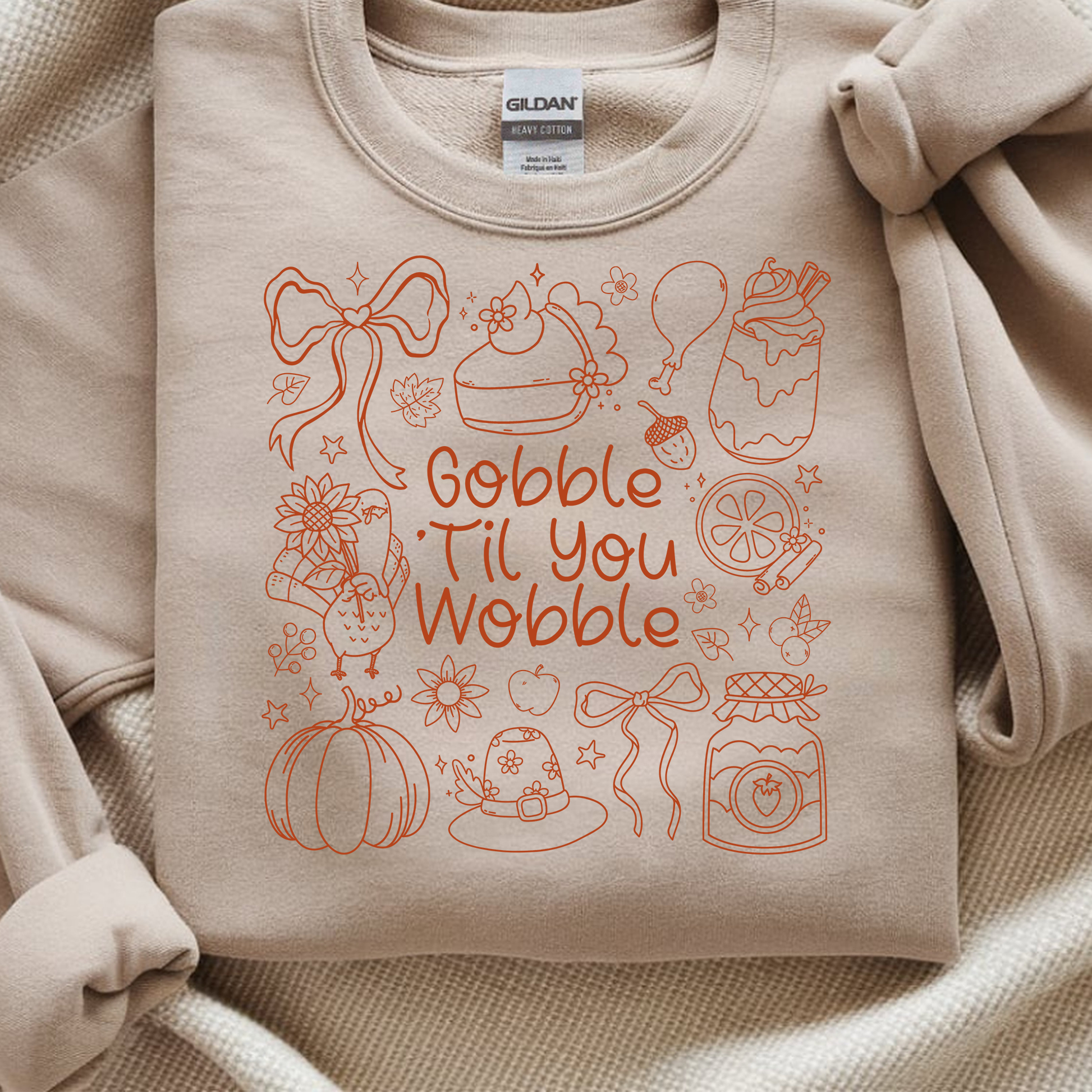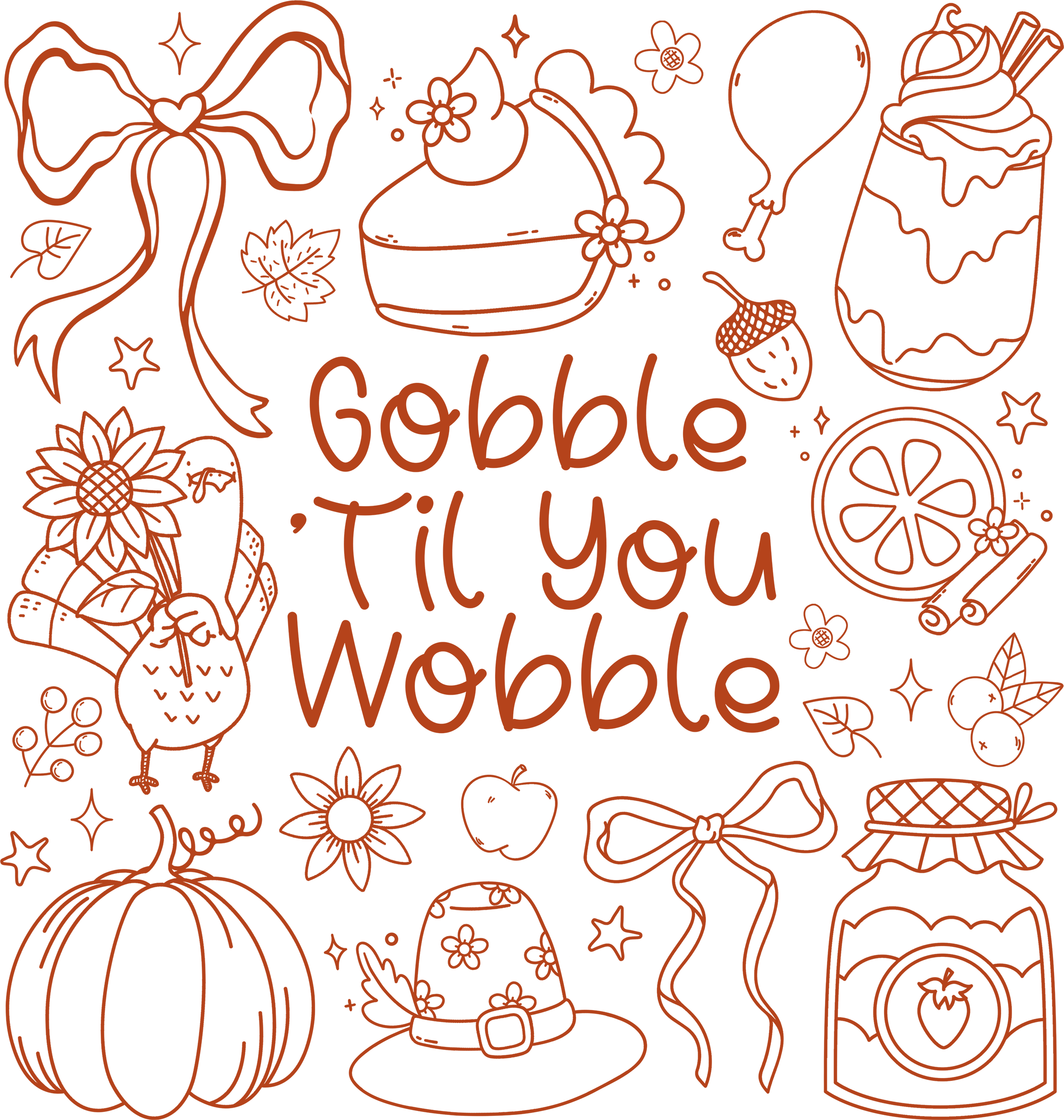 Get ready to shake your tail feathers this Thanksgiving! Our "Gobble Til You Wobble" DTF Heat Transfer is the secret ingredient for a fun-filled holiday. This playful and energetic design is all about celebrating with a little dance and a whole lot of delight. It’s perfect for creating hilarious and memorable shirts for the whole family to wear while they—you guessed it—gobble 'til they wobble!
