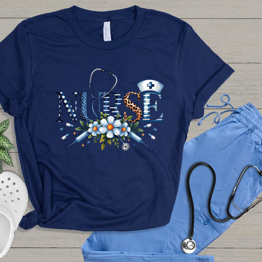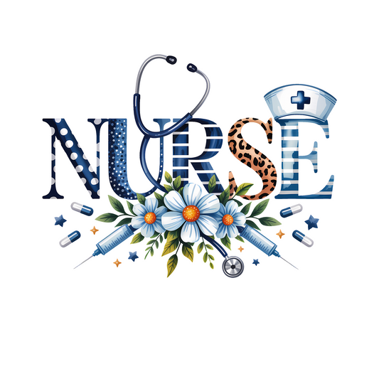 Floral Nurse DTF Heat Transfer | Stethoscope & Leopard Print Design