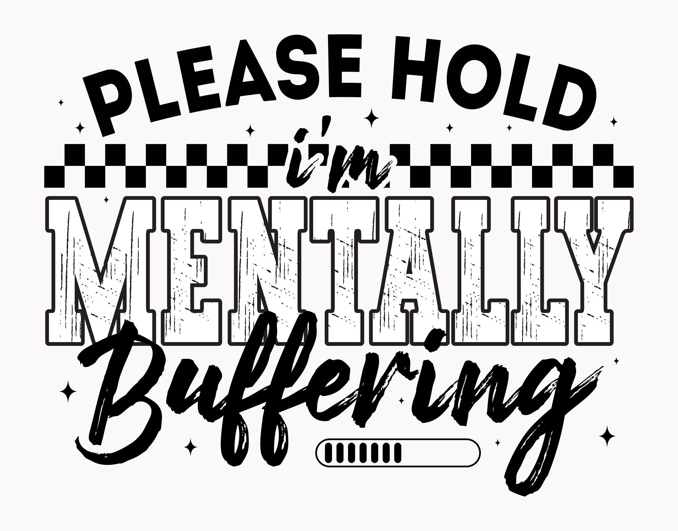 "Please Hold I'm Mentally Buffering" DTF Heat Transfer | Funny & Relatable Design