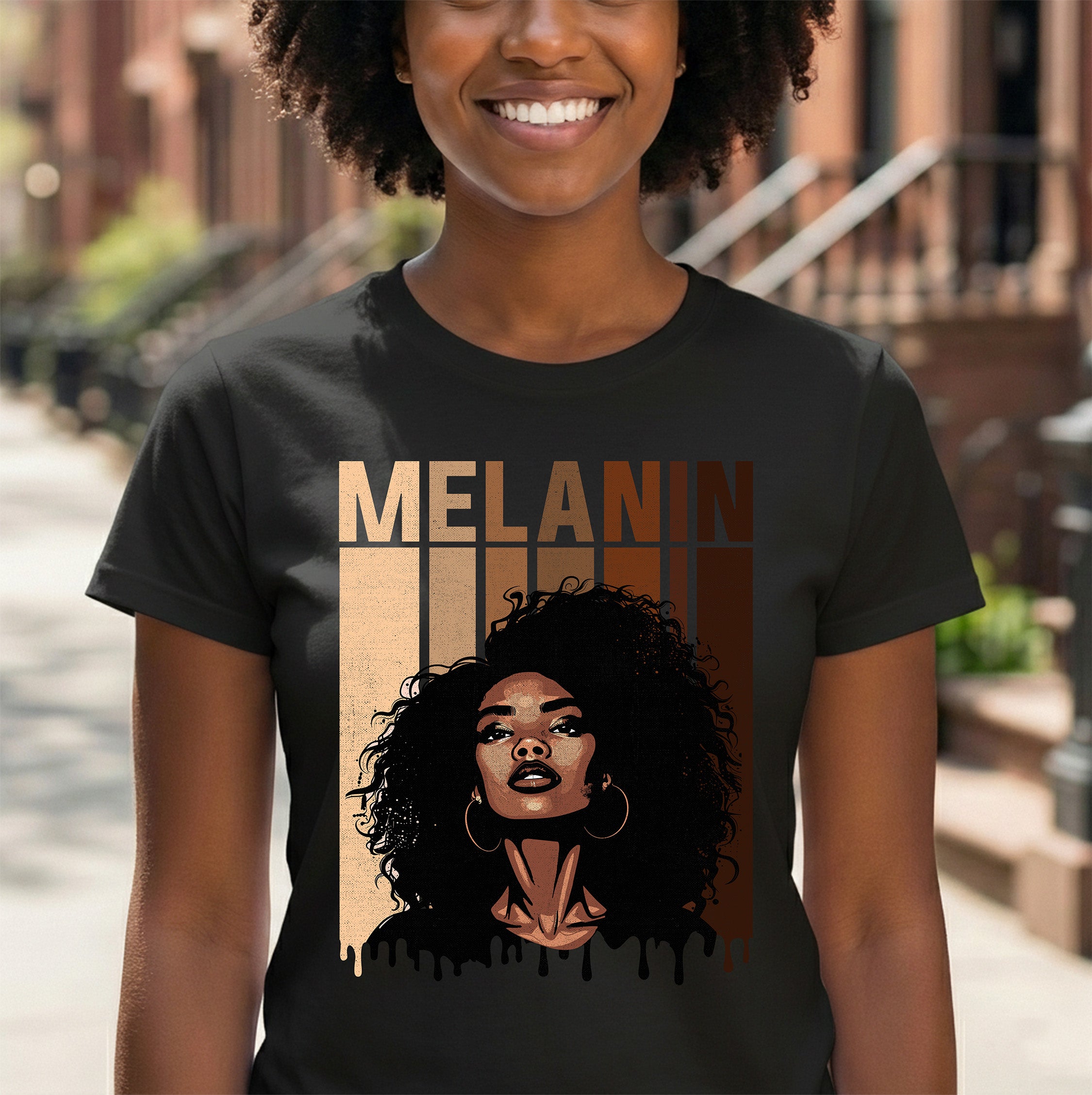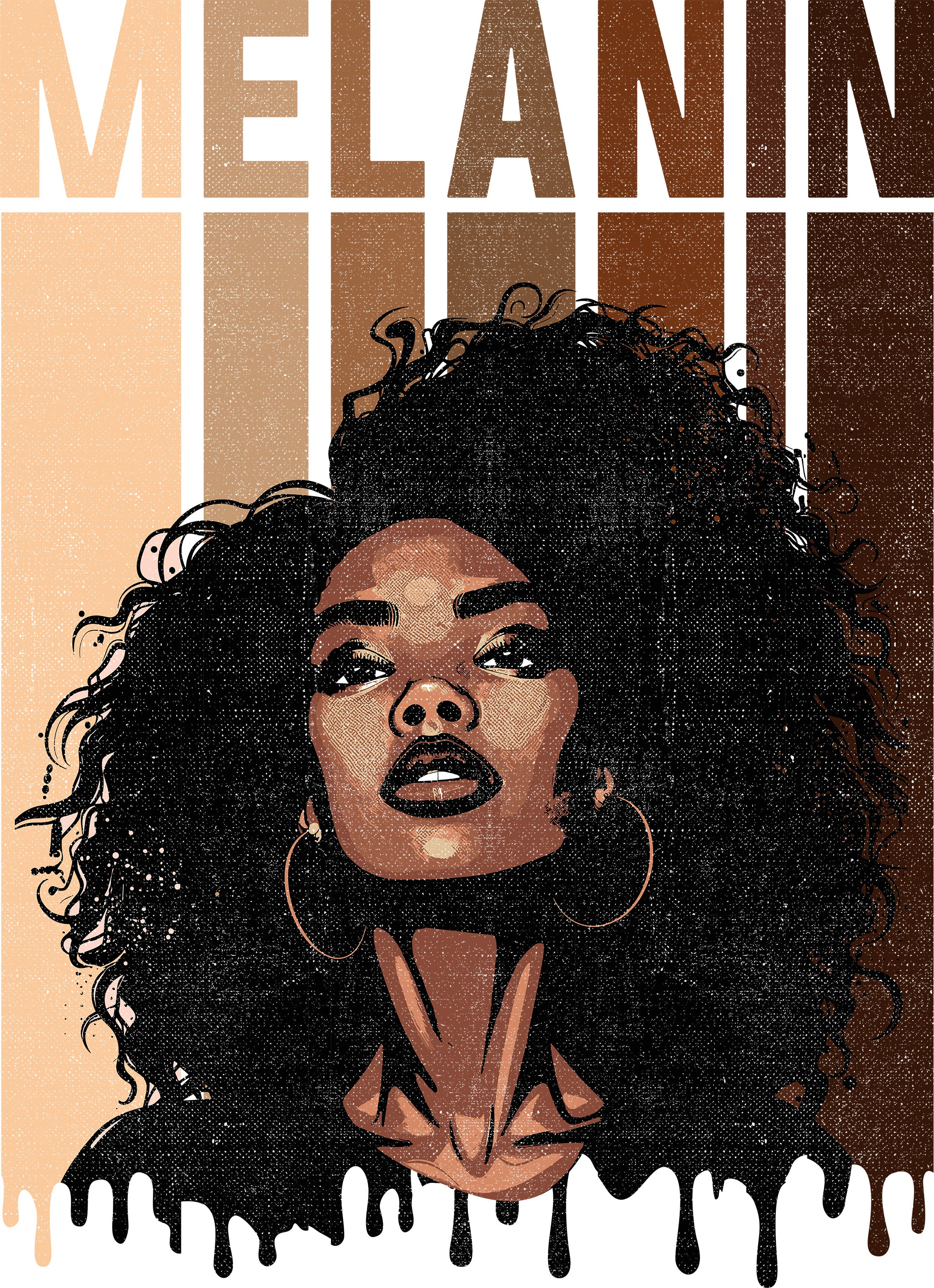 Celebrate the beauty of every shade with our stunning "Melanin" DTF transfer! Featuring a powerful, artistic portrait of a woman with gorgeous natural curls and a vibrant background of skin-tone gradients, this design is a true tribute to excellence and beauty.