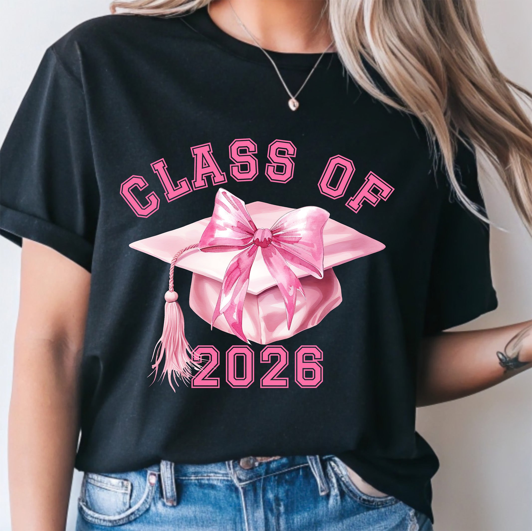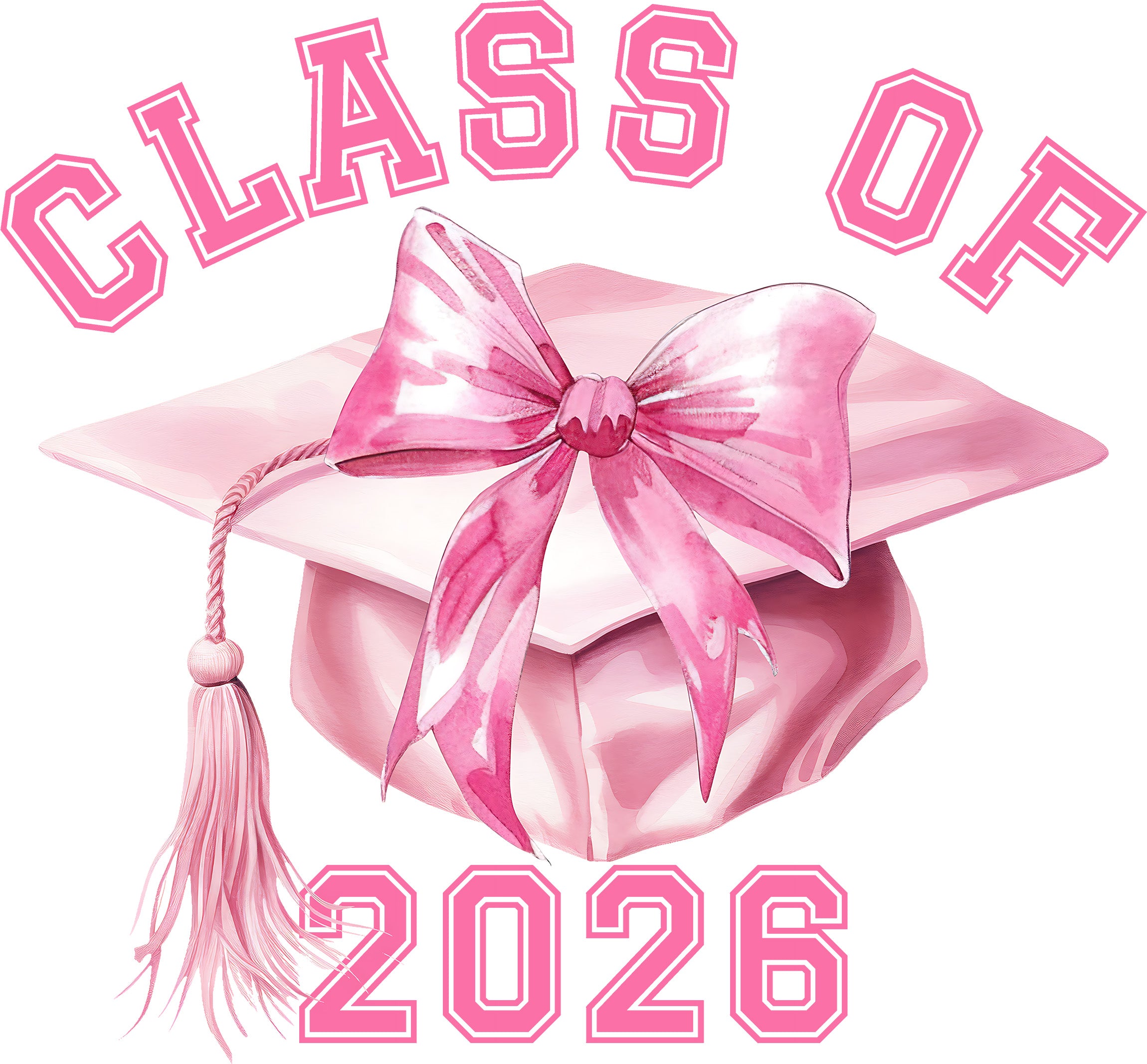Celebrate your milestone in style! Our "Class of 2026" DTF transfer is the ultimate blend of academic achievement and high-fashion flair. Featuring a dreamy, watercolor-style pink graduation cap topped with a massive, elegant pink bow, this design is perfect for the grad who wants to stand out from the crowd. 🎀✨