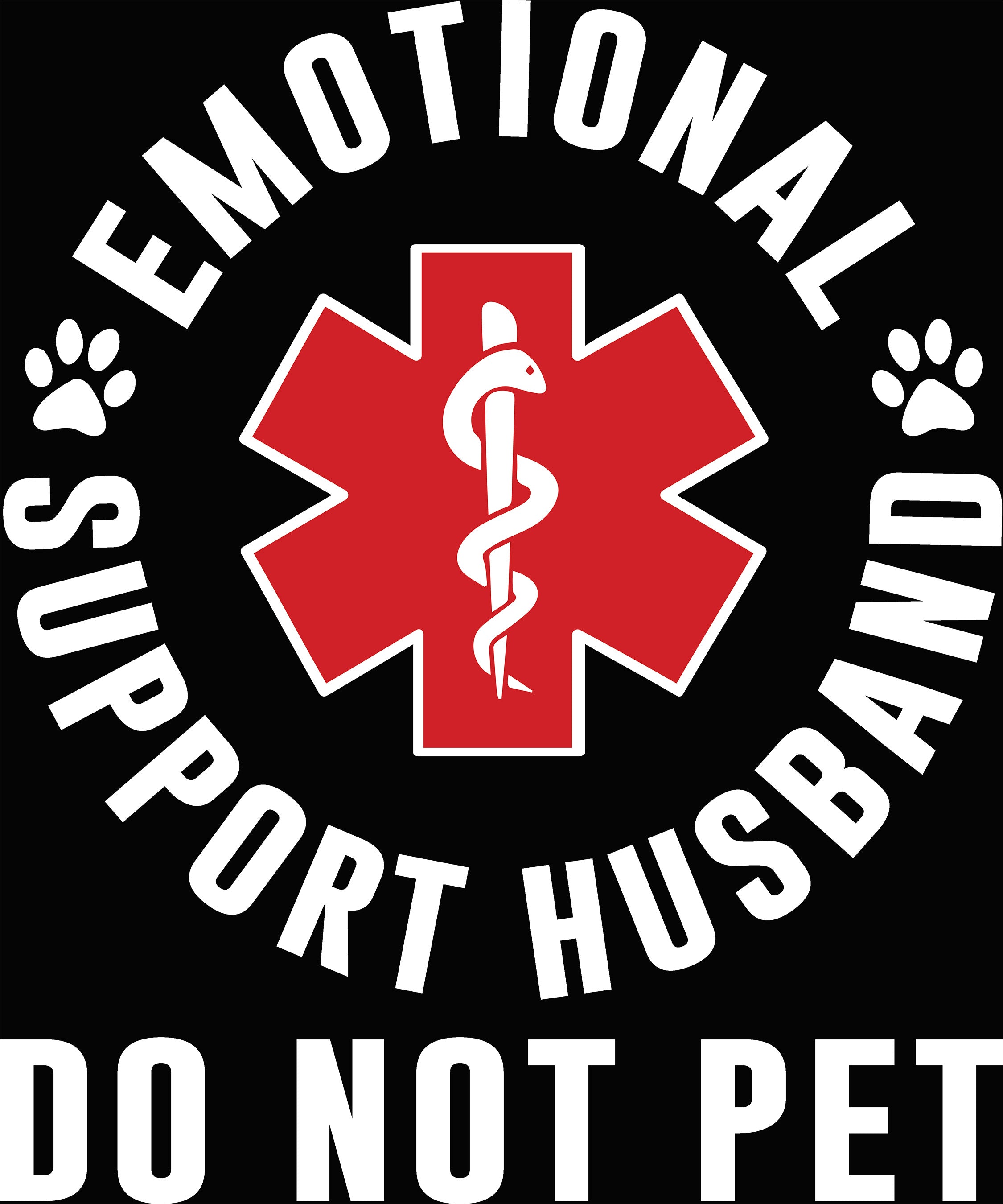 This clever parody transfer is styled just like a service animal patch. It features the text "EMOTIONAL SUPPORT HUSBAND" in a bold arch, surrounding a classic red Star of Life medical symbol. Accented with cute paw prints and finished with the stern instruction "DO NOT PET" in massive block letters at the bottom, itβs a side-splitting gift for anniversaries, birthdays, or just because he's your rock! πΎβ€οΈ