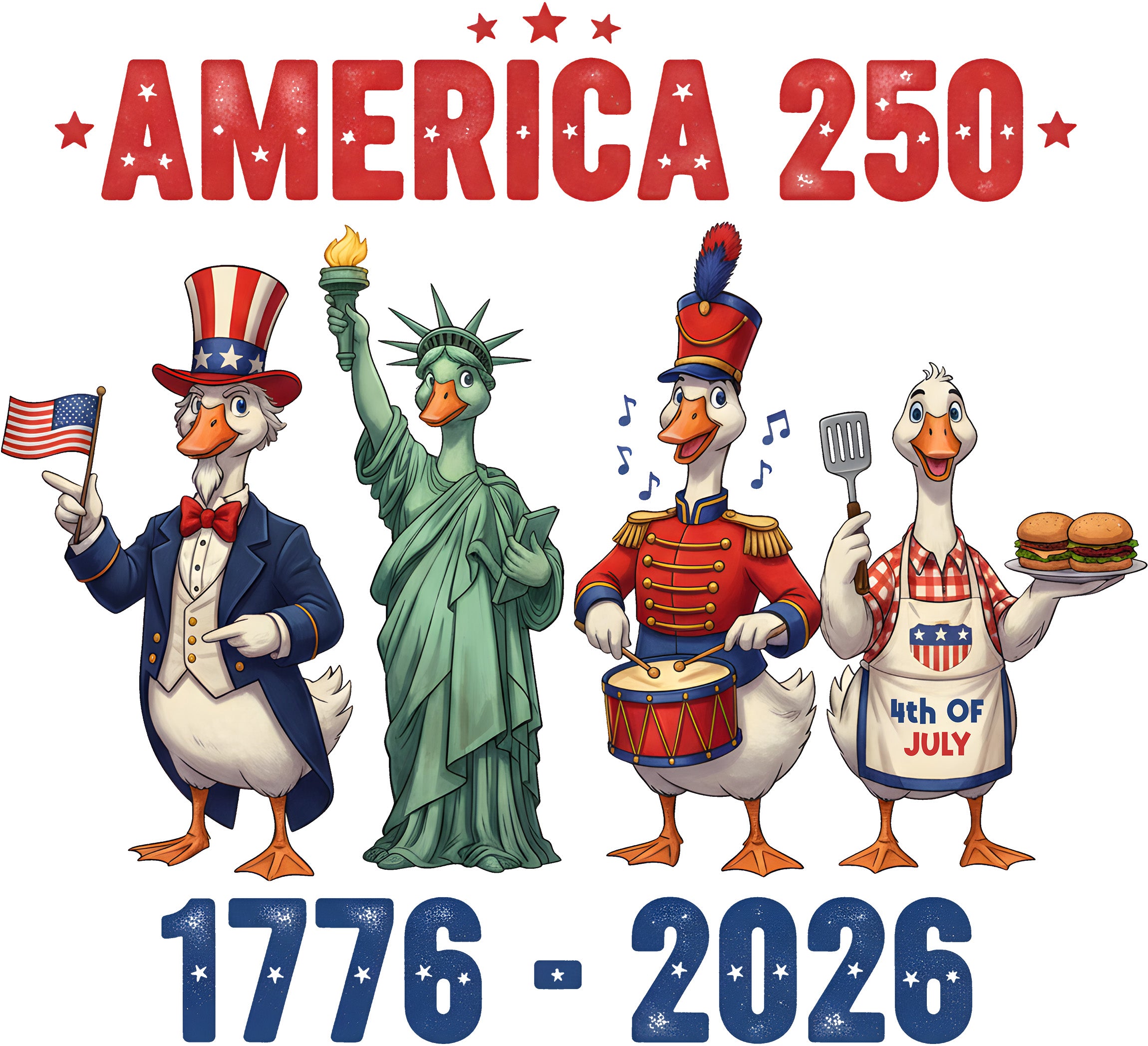 Get ready to celebrate the Semiquicentennial with a side of silliness! Our America 250 "Silly Geese" DTF transfer is the ultimate way to bring some fun to the 2026 celebrations. Featuring four patriotic feathered friends—including Uncle Sam, Lady Liberty, a drummer, and a grill master—this design is perfect for families, parades, and backyard BBQs.