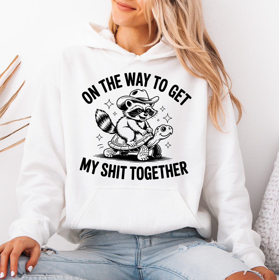 Featuring a determined raccoon donning a cowboy hat, hitching a ride on a trusty turtle, this illustration captures the perfect balance of ambition and procrastination. The bold, black line-work illustration pairs a classic western vibe with relatable humor. It’s perfect for cozy hoodies, sarcastic tees, or tote bags for carrying all the things you haven't organized yet.