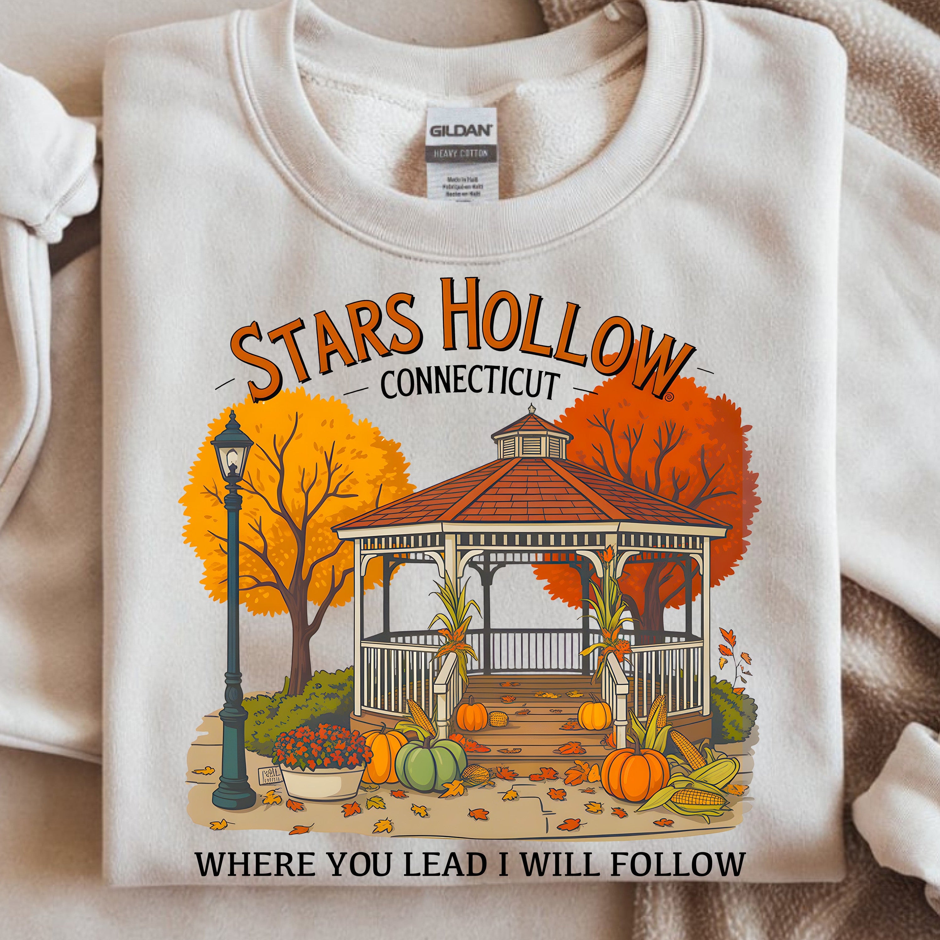 Pour yourself a giant coffee from Luke's, grab a Pop-Tart, and get ready to be transported to everyone's favorite cozy corner of Connecticut! Our "Stars Hollow" DTF Heat Transfer is pure, unfiltered nostalgia for any Gilmore Girls fan. This beautiful design features the iconic town gazebo, perfectly decorated for a crisp autumn day with vibrant foliage, pumpkins, and corn stalks.