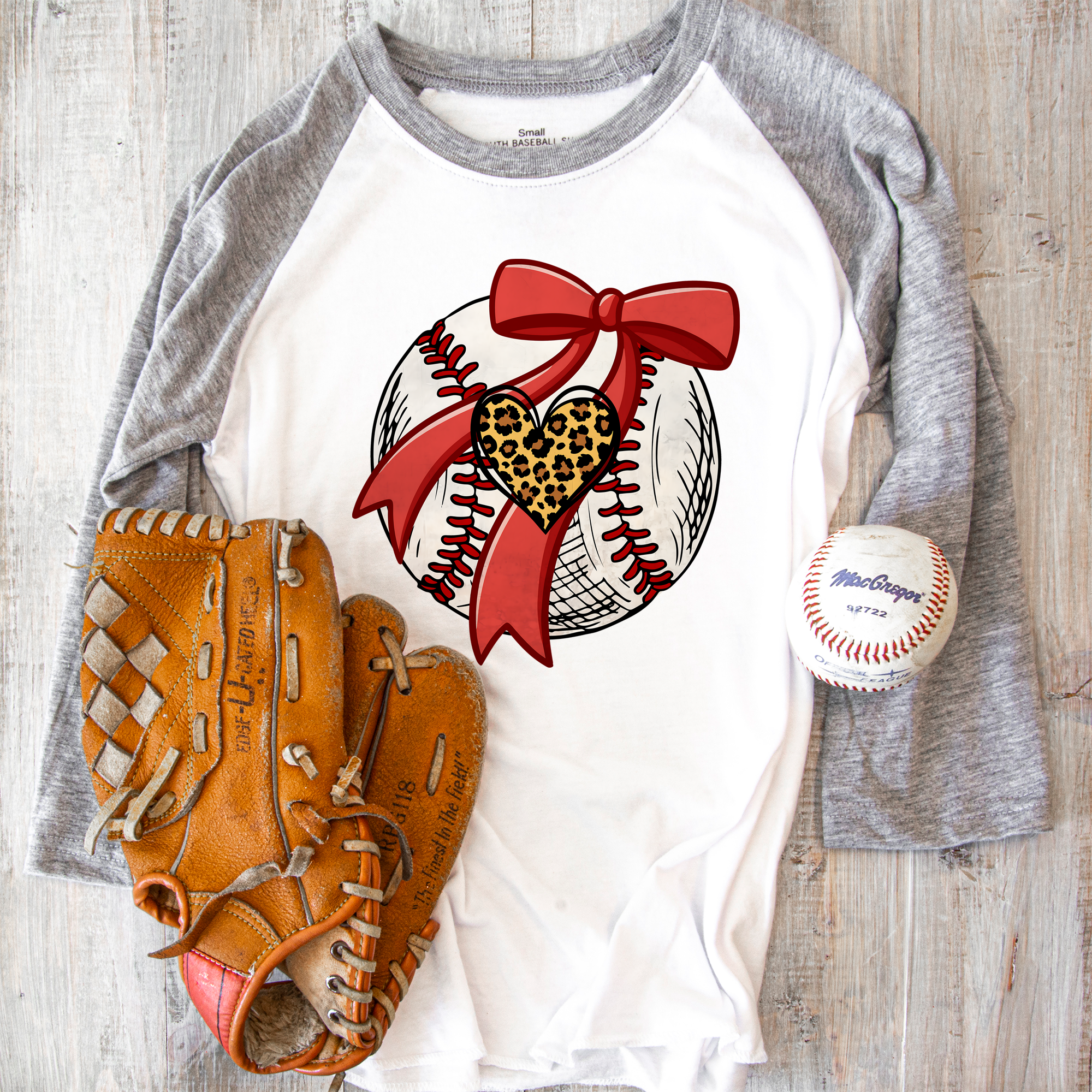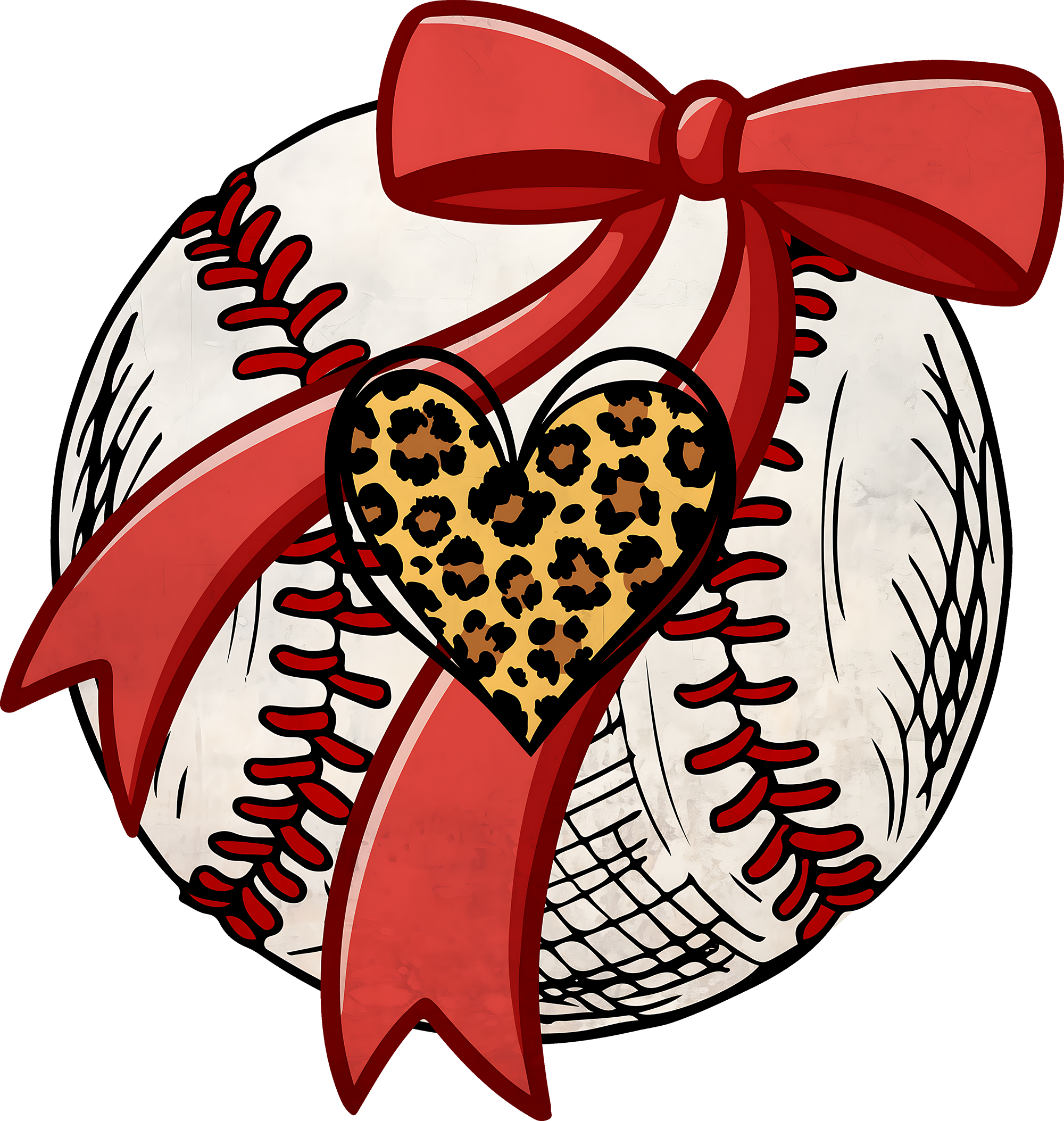 Why choose between sporty and cute when you can have both? Our "Baseball Bow & Leopard Heart" DTF transfer is the ultimate fan gear update. This design combines a classic sketched baseball with a trendy, oversized red bow and a sassy leopard print heart right in the center.