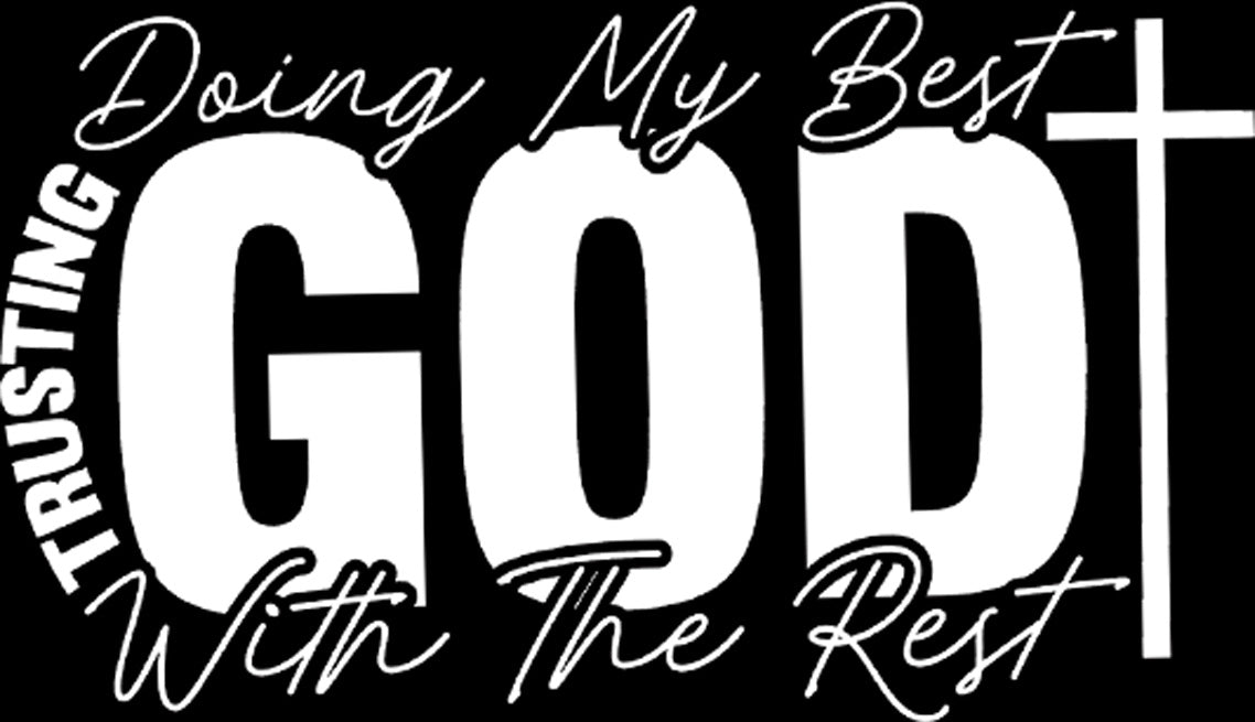 We all need this gentle reminder sometimes! Our Doing My Best, Trusting God With The Rest transfer is the perfect blend of encouragement and style. This beautiful design features a stunning contrast between fonts: the phrases "Doing My Best" and "With The Rest" are written in a flowing, elegant white script.