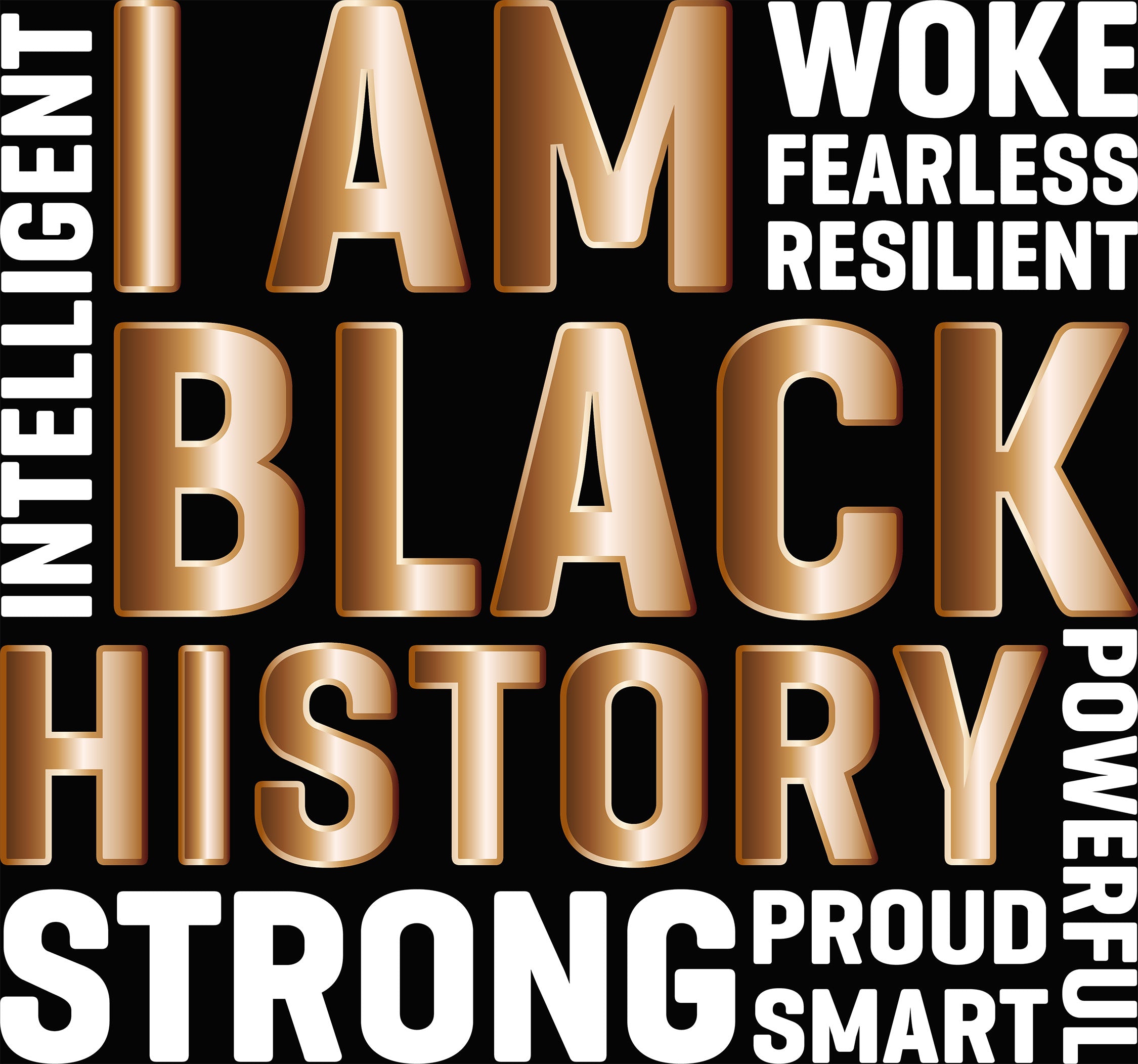Celebrate identity, strength, and brilliance with our "I Am Black History" DTF transfer! ✊🏾 This design is a powerful anthem in print, featuring bold, golden-gradient typography surrounded by empowering words like Intelligent, Fearless, Resilient, and Powerful. It’s more than just a transfer; it’s a statement of pride that looks incredible on everything from custom hoodies to statement tees.