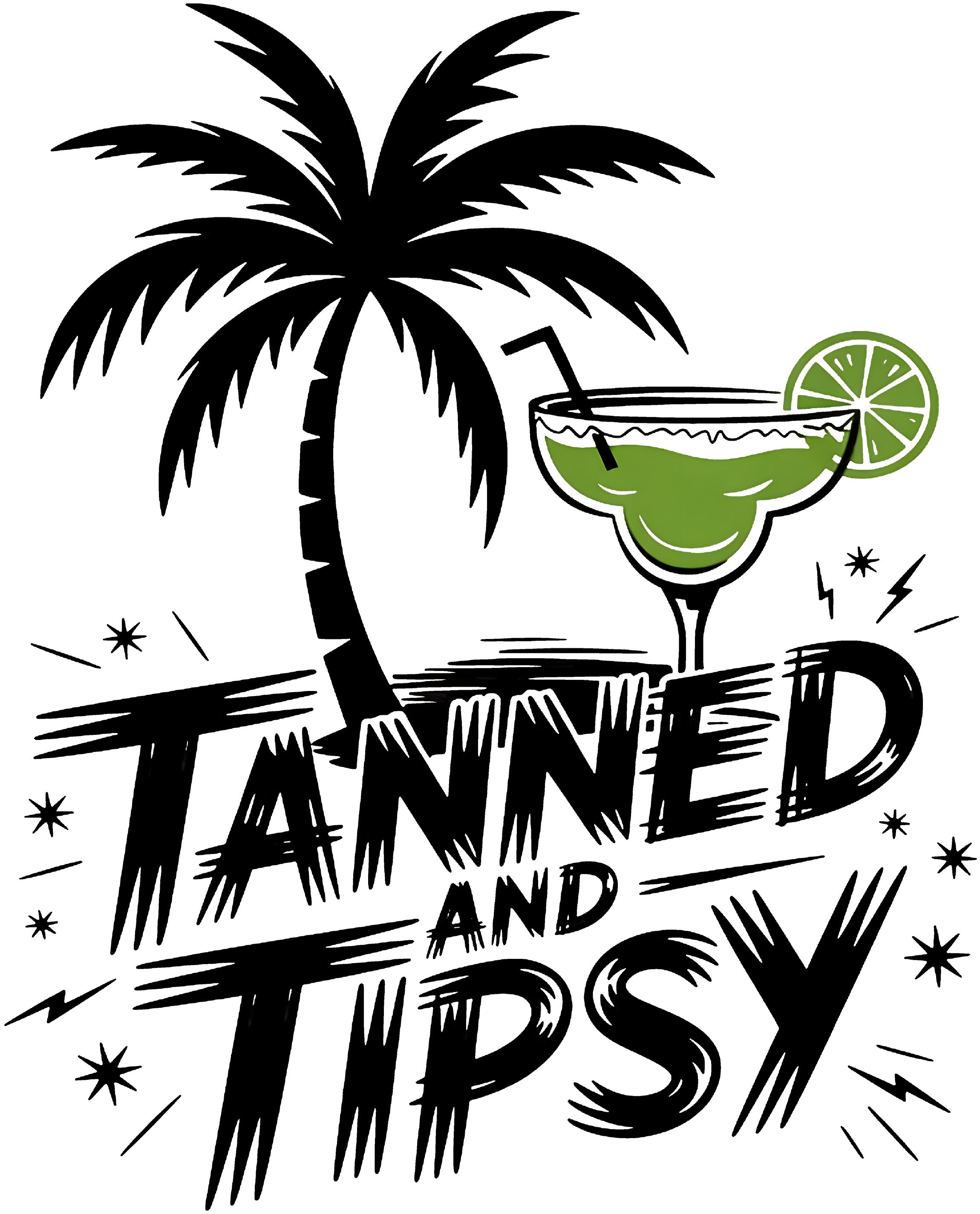 Ready to switch to vacation mode? Our "Tanned and Tipsy" transfer is the ultimate companion for your next girls' trip, beach getaway, or poolside party! Featuring a bold palm tree, a refreshing margarita, and a fun, distressed font, this design is all about good times and tan lines. As a Crystal’s Besties exclusive, you’re getting a high-energy look that is as unique as your summer plans!