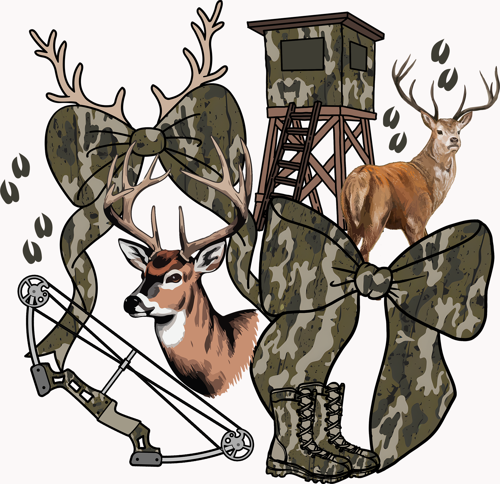 🏹 Camo & Bows: "Girls Hunt Too" DTF Heat Transfer