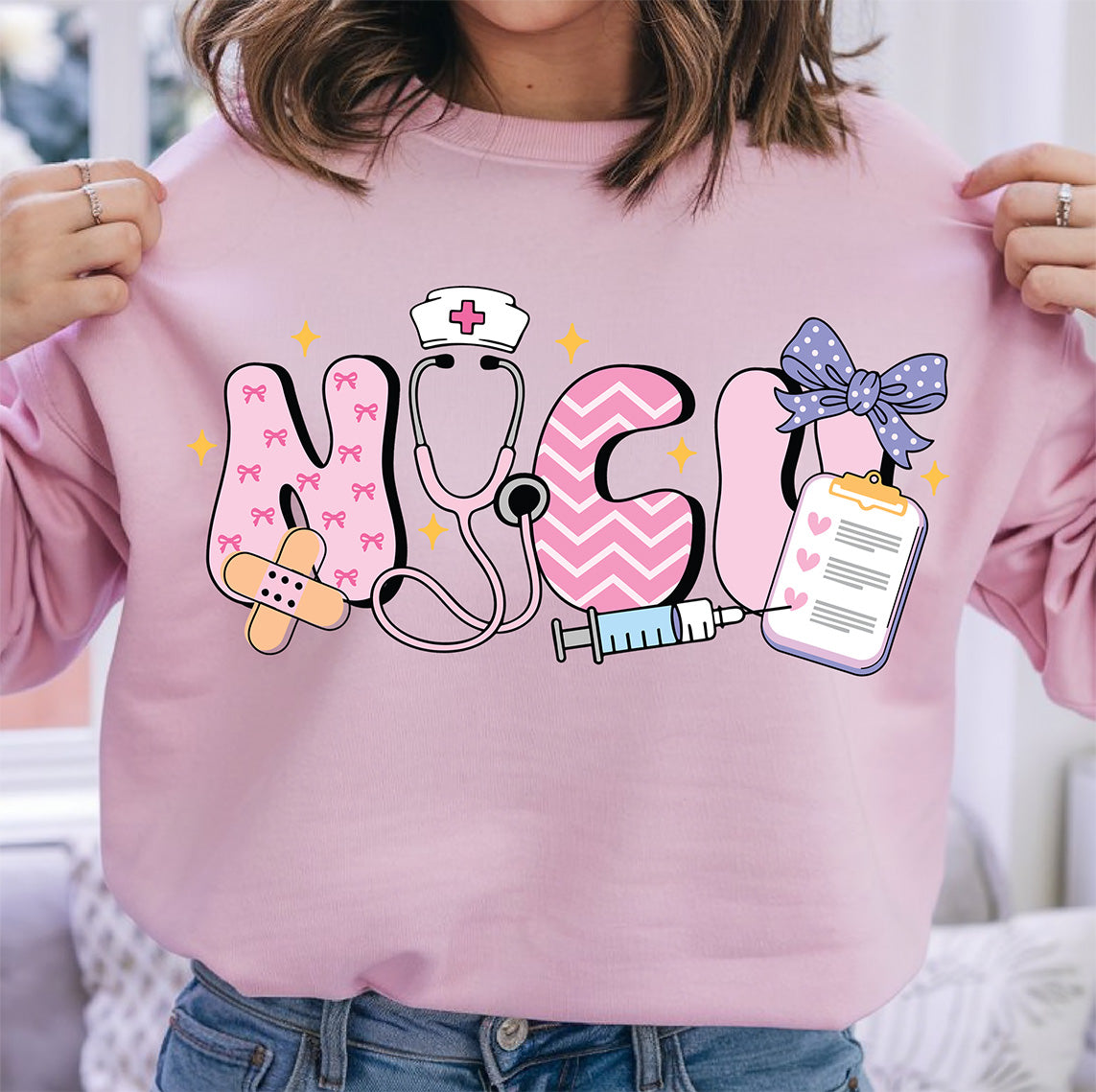 Surrounded by golden sparkles, this design is the ultimate badge of honor for Neonatal Intensive Care Unit nurses. It looks absolutely precious on scrub tops, tote bags, or team tees! πΌπ