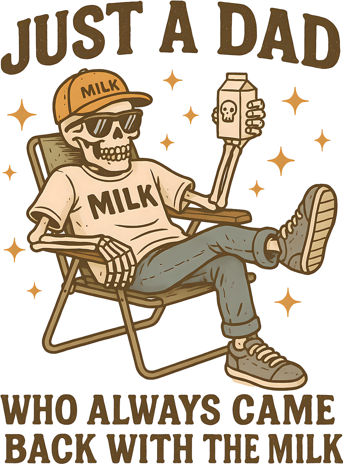 ๐Ÿฅ›๐Ÿ’€ The Real MVP: "Just A Dad Who Always Came Back With The Milk" Skeleton โ€“ Premium DTF Transfer