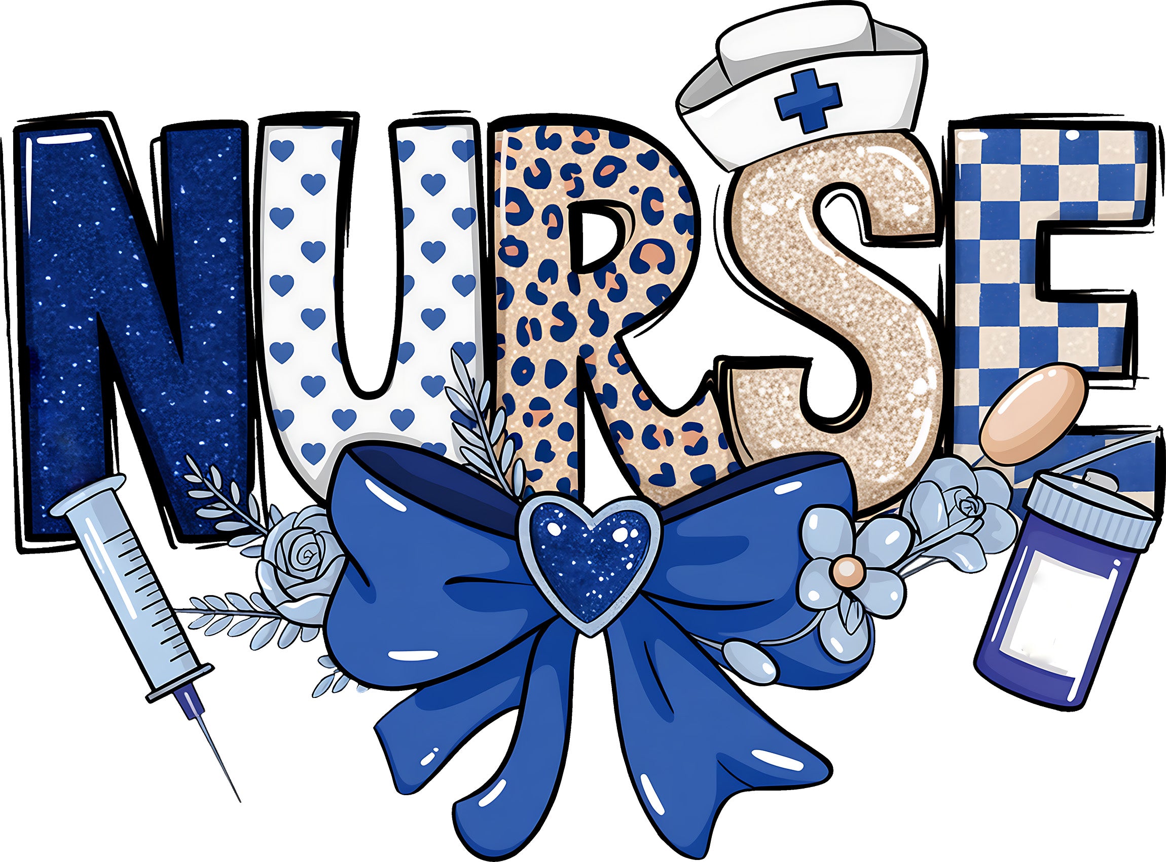 💙 Boutique Blue: The Preppy Patterned Nurse Bow DTF Transfer!