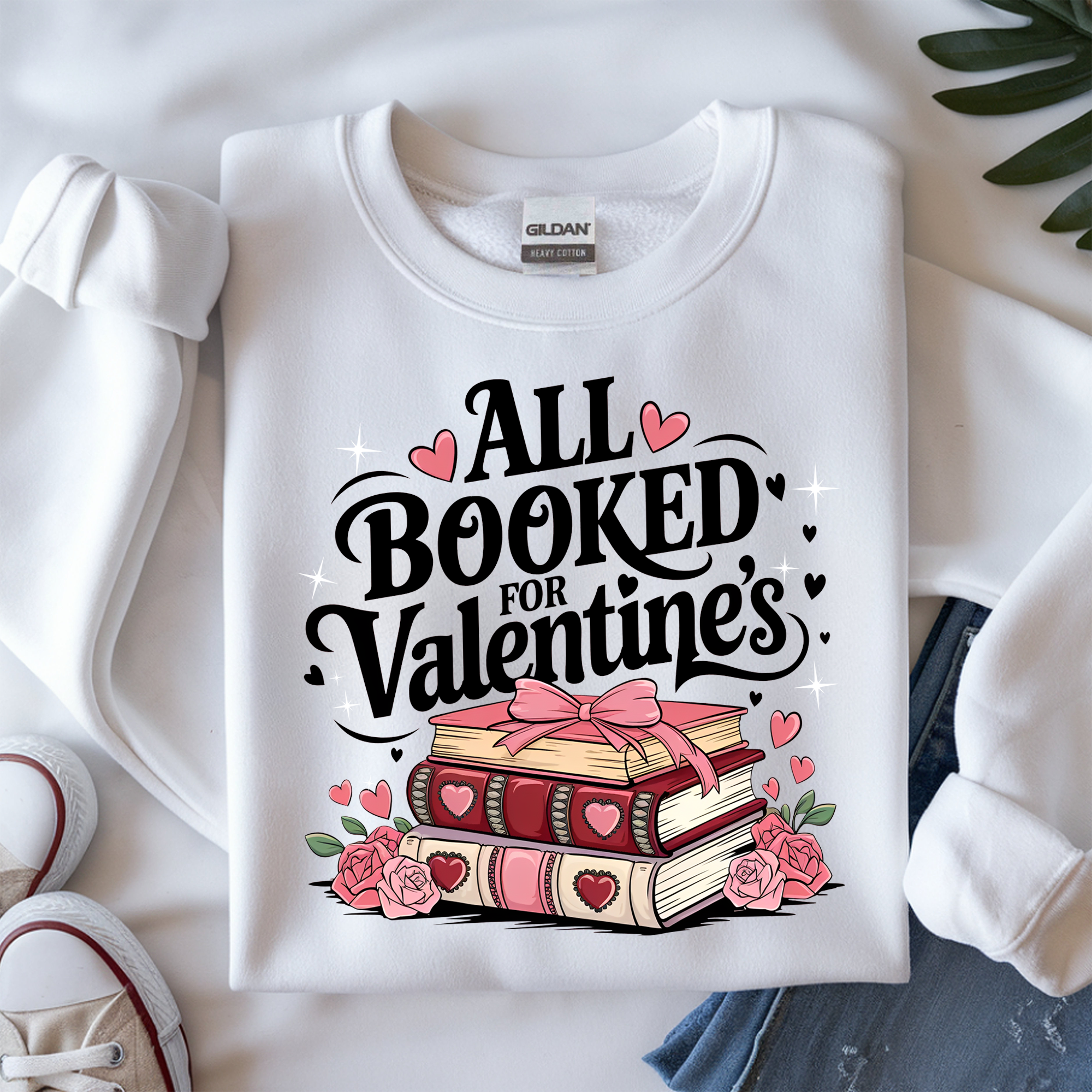 For the bookworms who prefer fictional boyfriends over real ones, our "All Booked for Valentine's" DTF transfer is the perfect fit! This charming design features a beautiful stack of vintage-style books adorned with hearts and bound by a sweet pink ribbon. Surrounded by blooming roses and sparkling hearts, itβs the ultimate statement piece for your literary lovers.