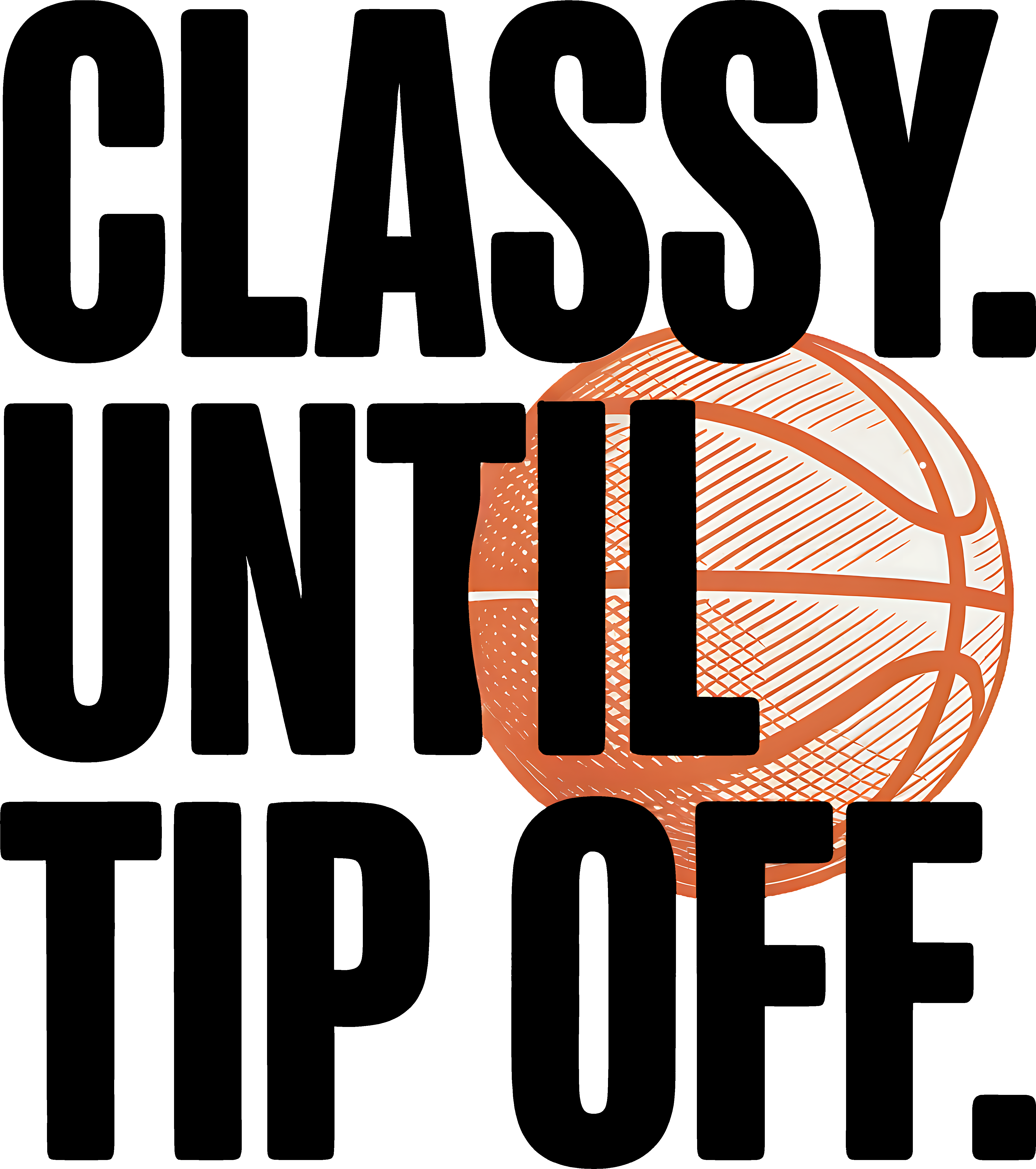 Let everyone know exactly where you stand with our "Classy Until Tip Off" DTF transfer. We all know that one basketball mom (or maybe we are that mom!) who is the picture of grace... right until the ref blows that whistle.