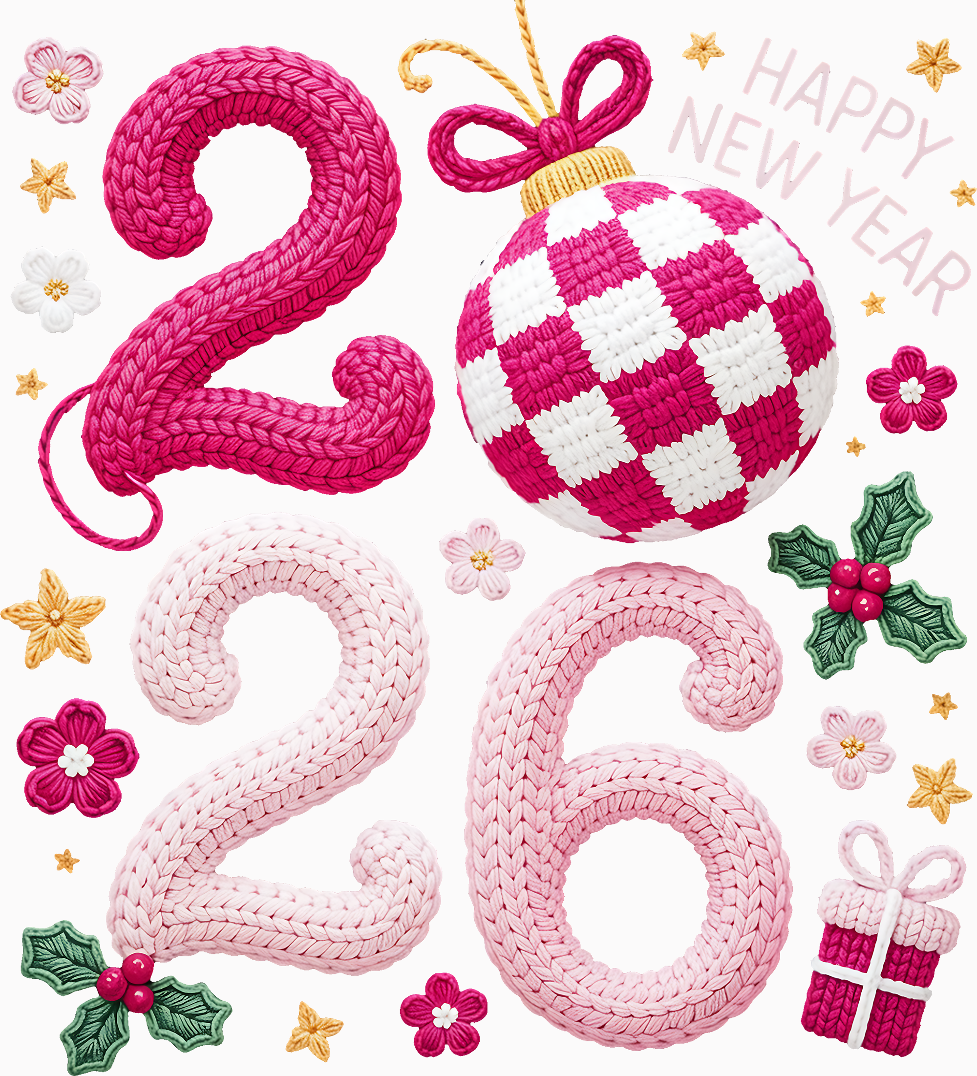"Cozy Crochet" Happy New Year 2026 – Premium DTF Transfer