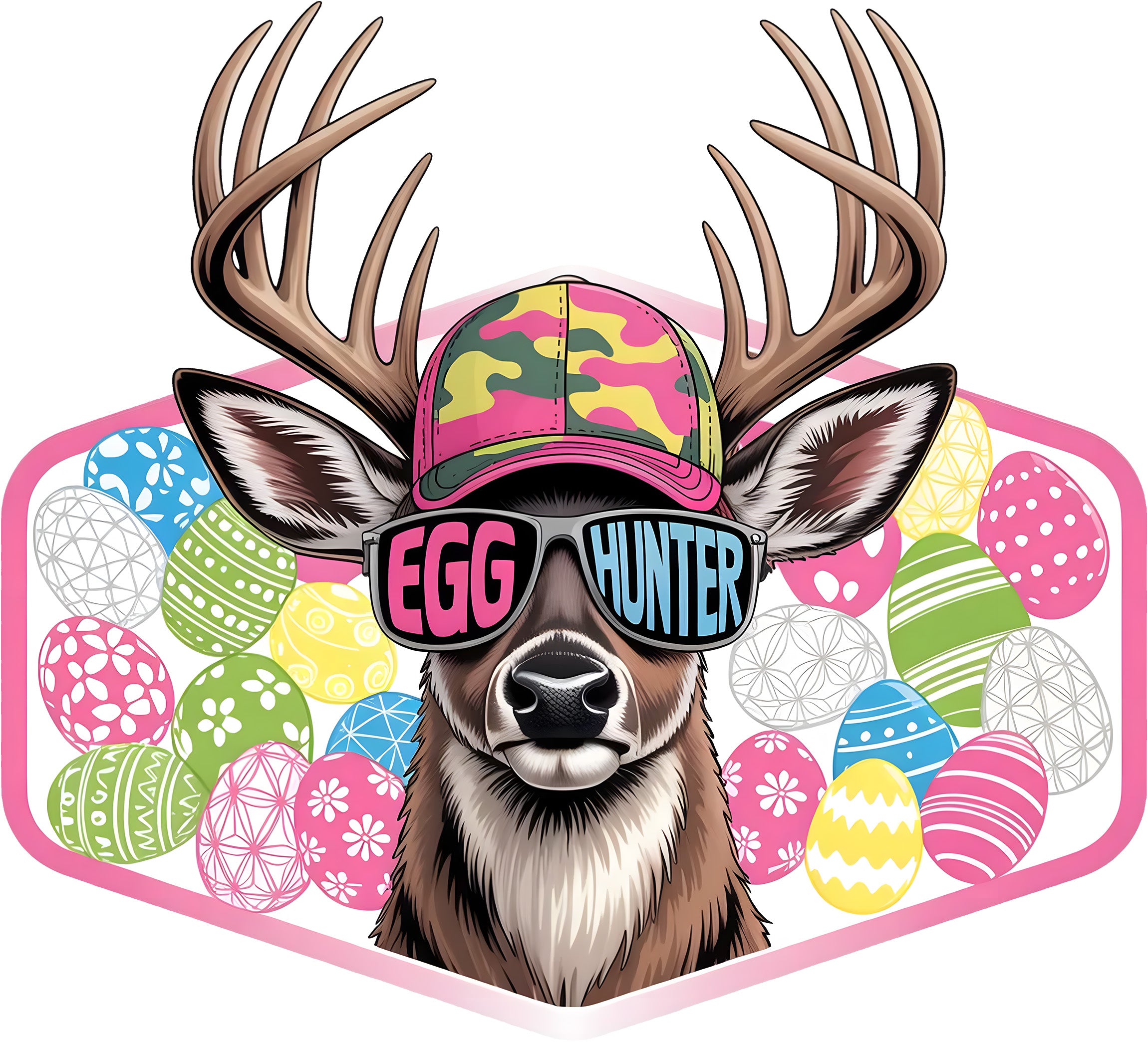 Get ready to track down some serious holiday fun! 🐣 Our "Egg Hunter" DTF transfer is the ultimate mashup for the outdoor family this Easter. Featuring a cool buck rocking a camo hat and "Egg Hunter" shades, surrounded by a vibrant stash of colorful eggs, this design is perfect for the little (and big!) hunters in your life.