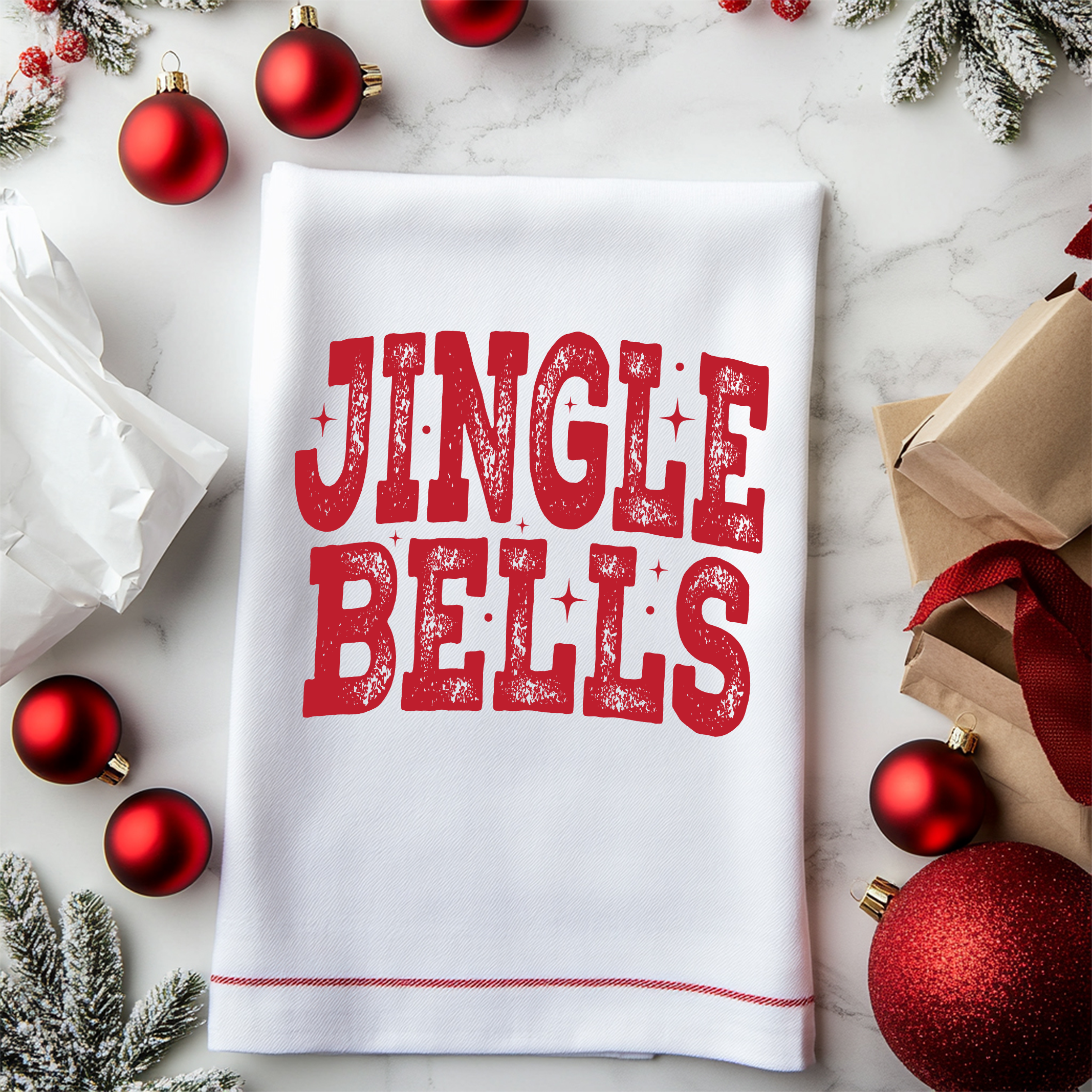 "Jingle Bells" Vintage Distressed Red – Premium DTF Transfer