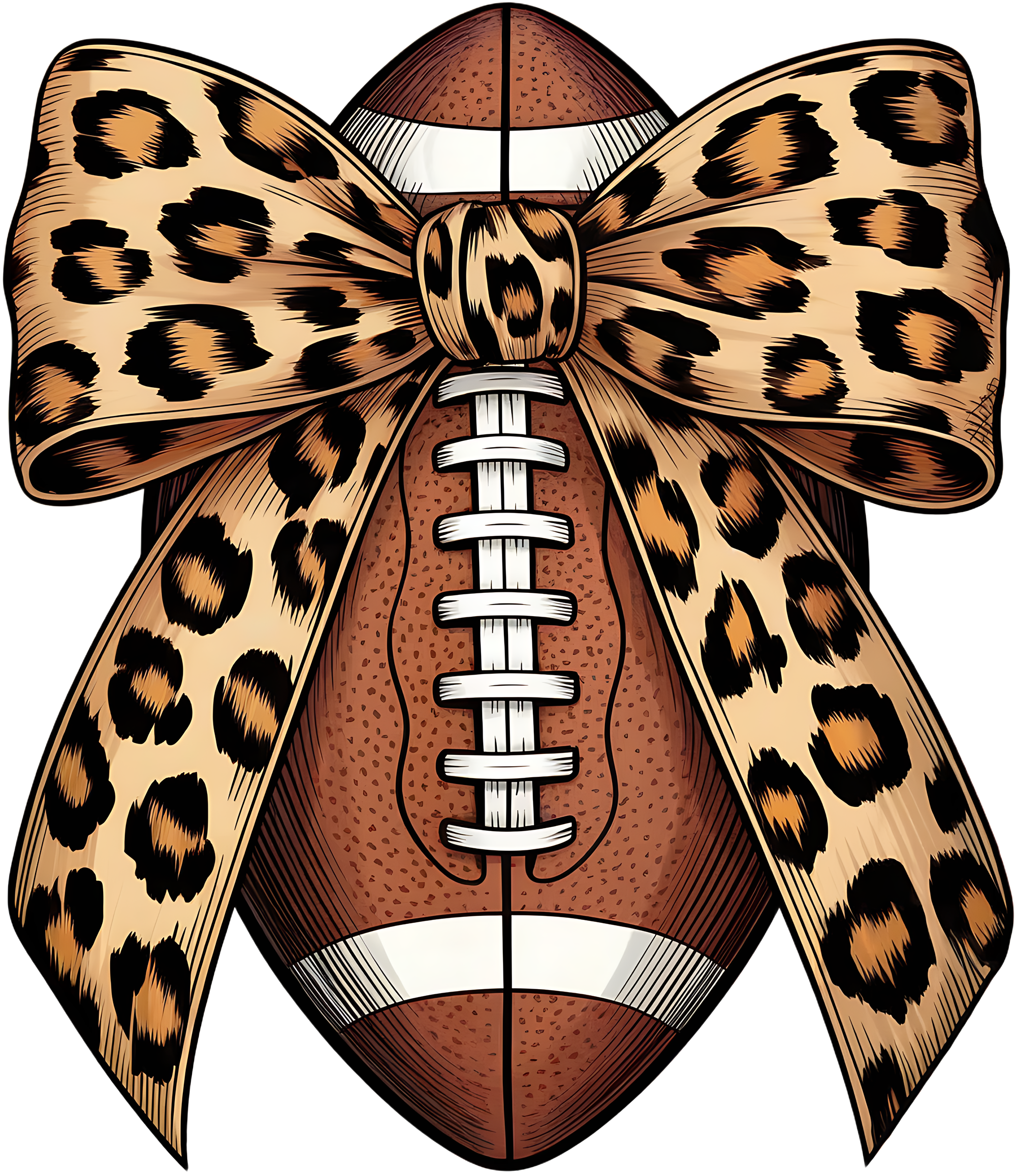 Bring the fierce to the field! Β ππ This Leopard Print Bow Football DTF heat transfer is for the fan who loves to combine their passion for the game with a bold sense of style. It's the perfect mix of tough and trendy, featuring a classic football all wrapped up in a fabulous, oversized leopard print bow.