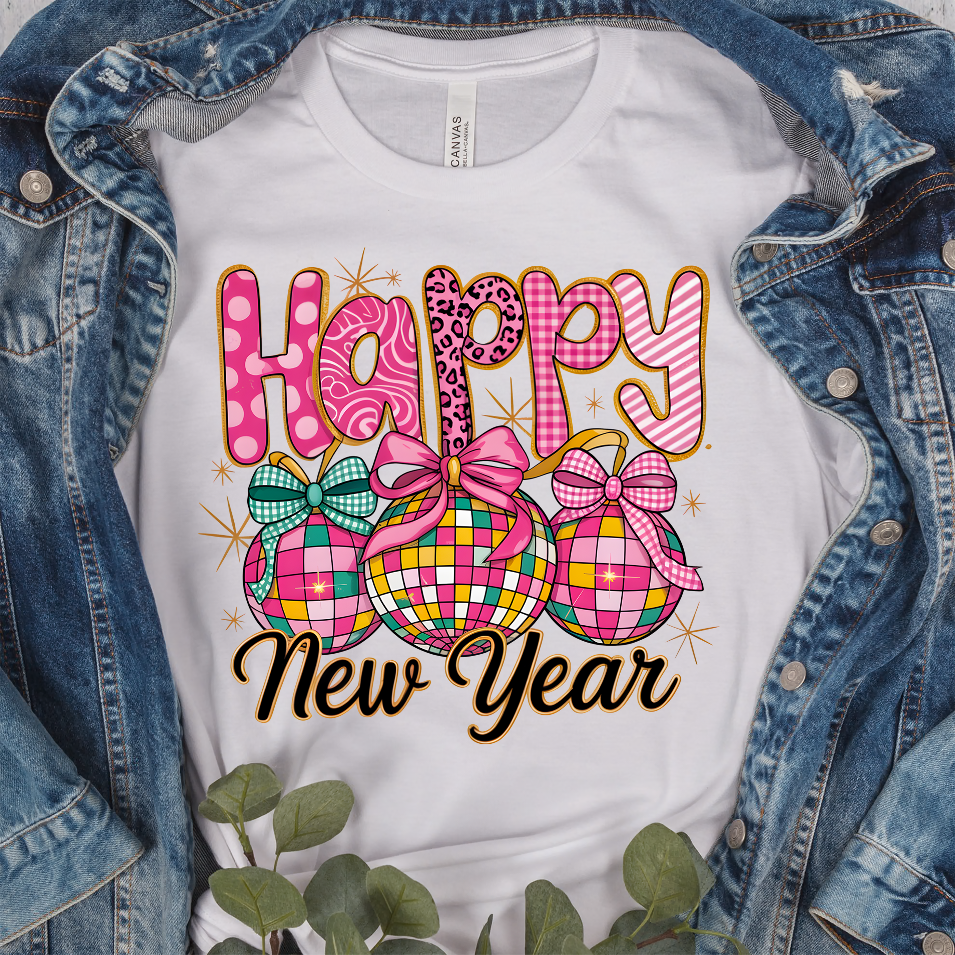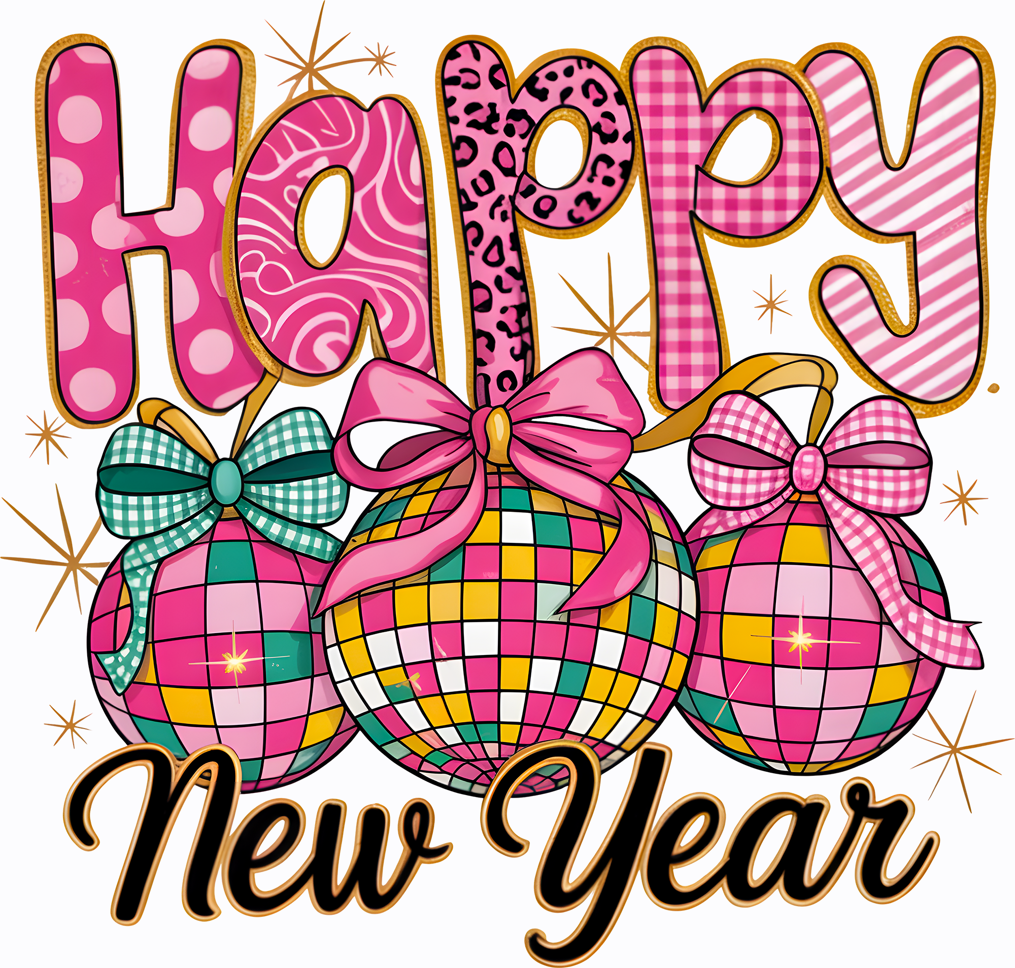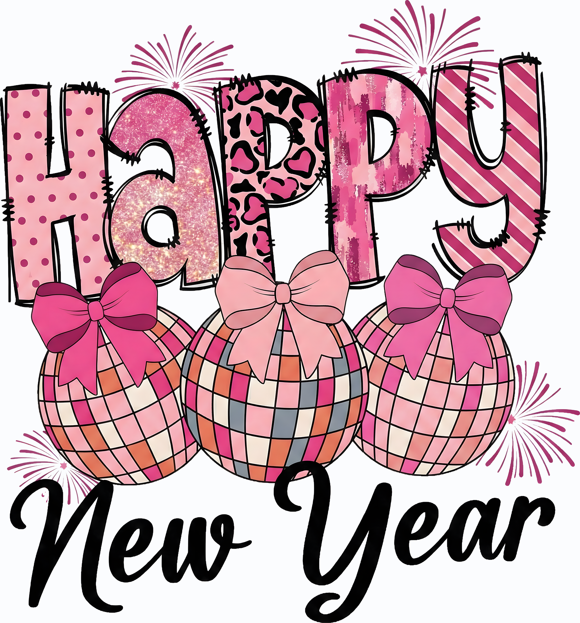 🪩 Pink Disco Happy New Year – Ready-to-Press DTF Transfer