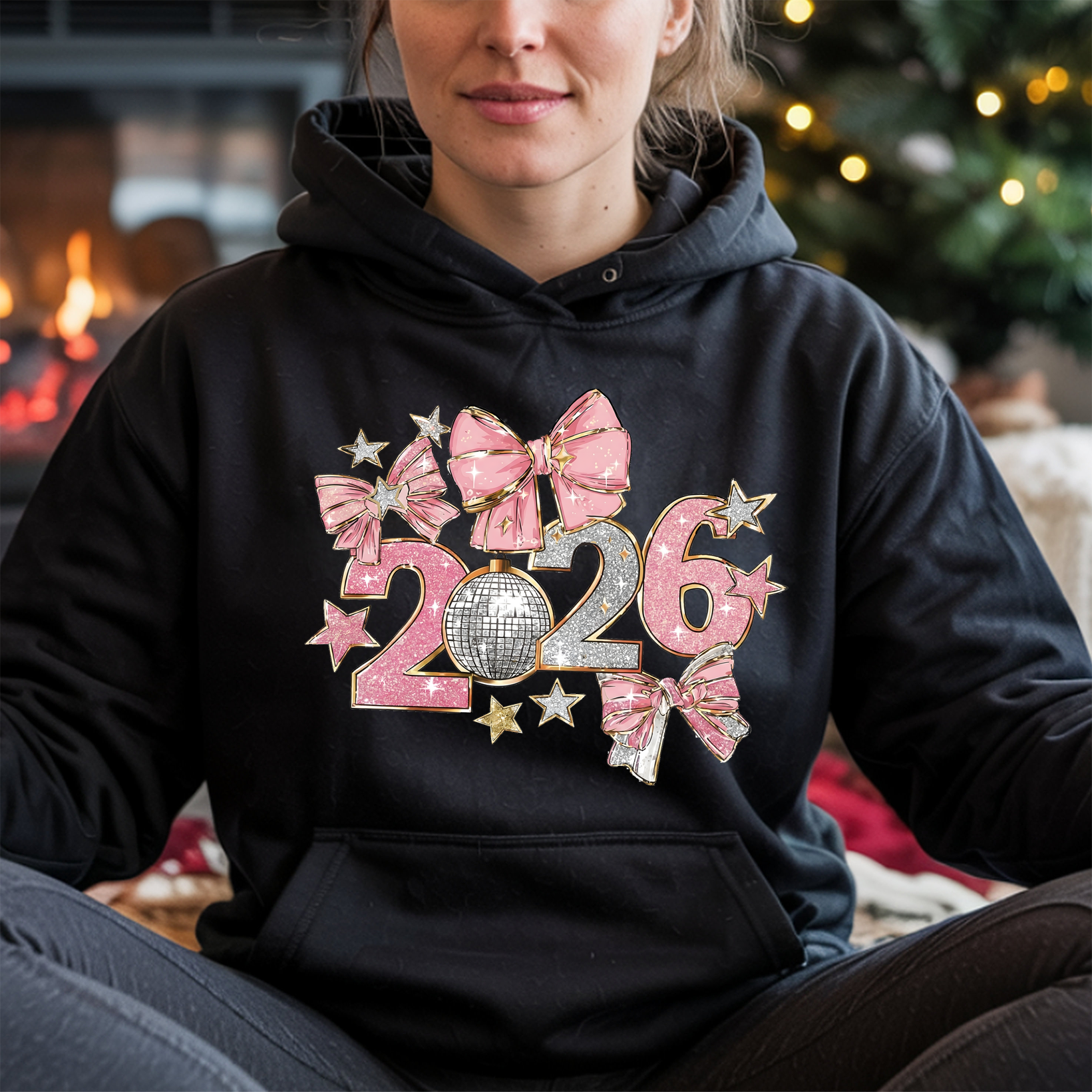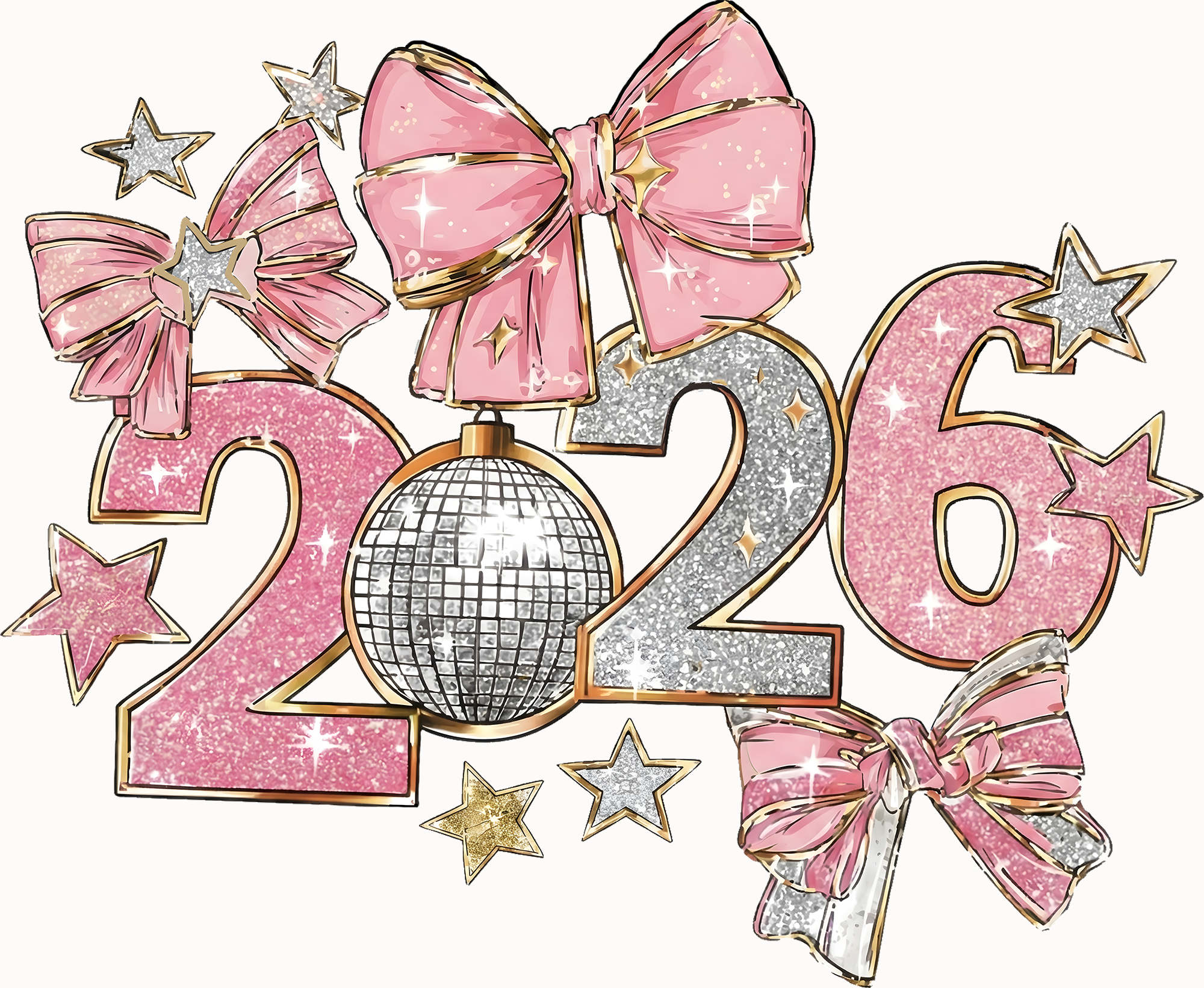 Get ready to ring in the New Year (or celebrate the Class of '26!) with serious style. Our "Preppy 2026" DTF transfer combines the hottest trends into one adorable design. Featuring massive pink coquette bows, a shimmering disco ball, and faux gold and glitter textures, this design is the ultimate statement piece.