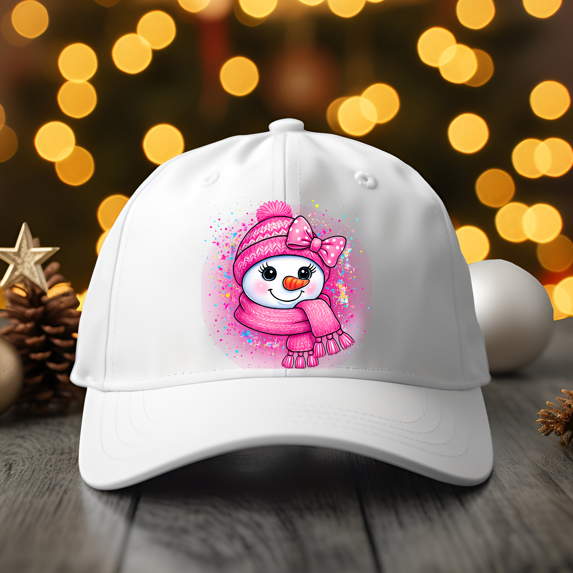 Who says winter has to be all red and green? For the girlies who believe pink is a neutral (even at Christmas!), this transfer is an absolute dream. Meet the cutest snowgirl on the block!