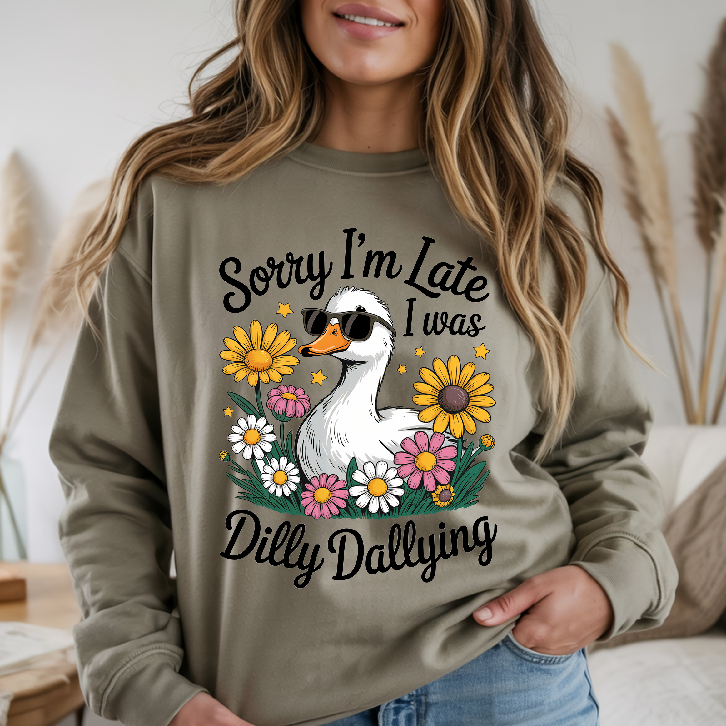 Sorry I'm Late I Was Dilly Dallying DTF Heat Transfer