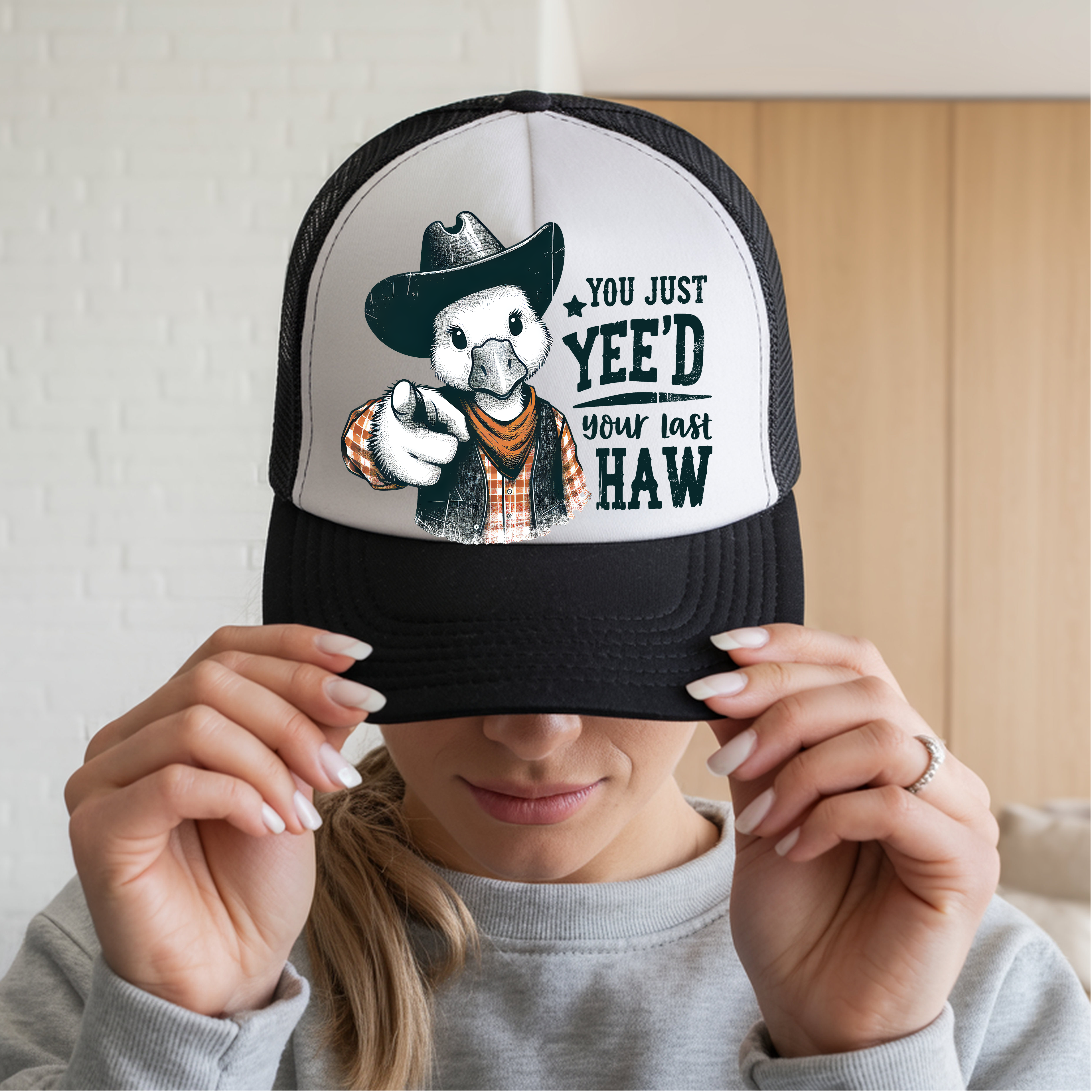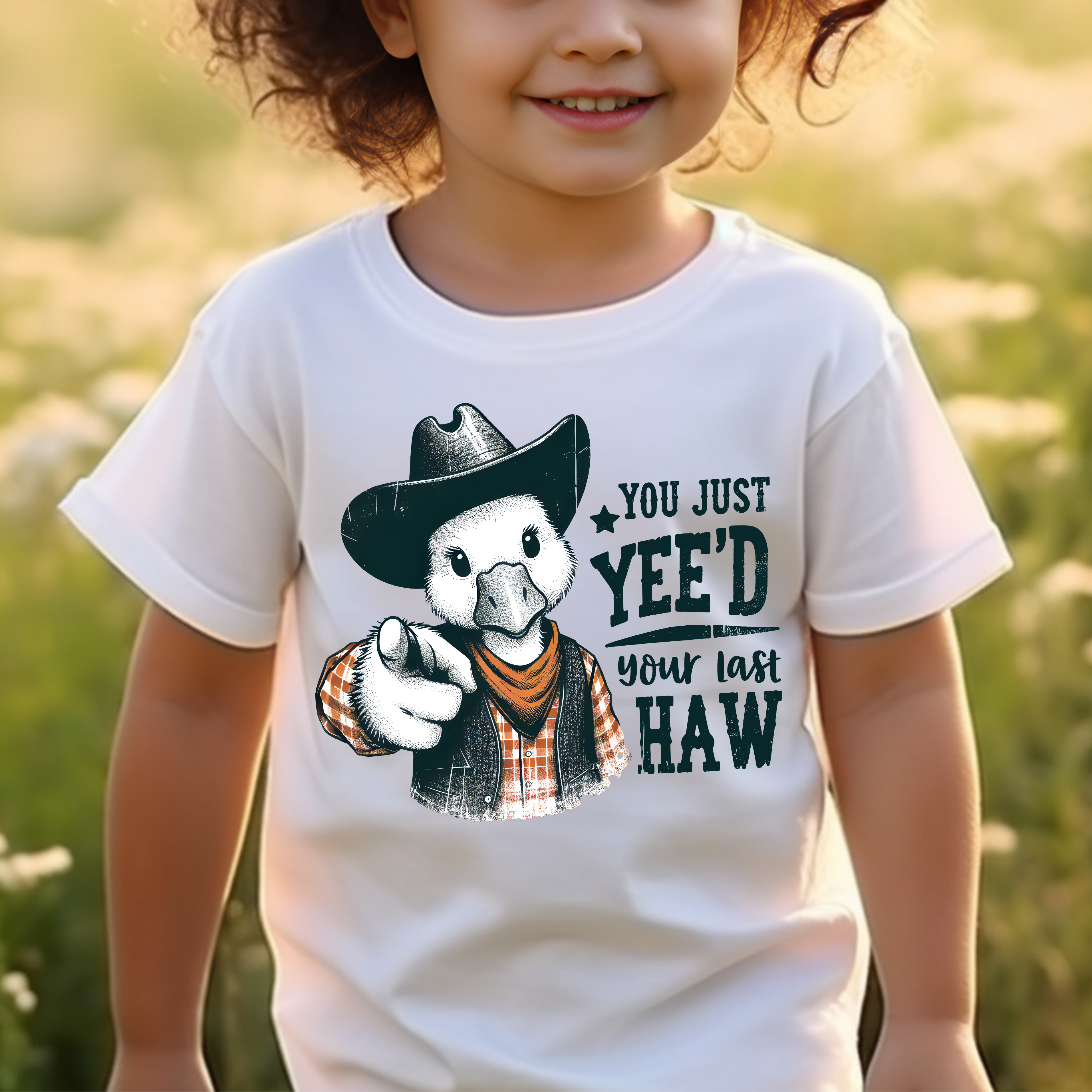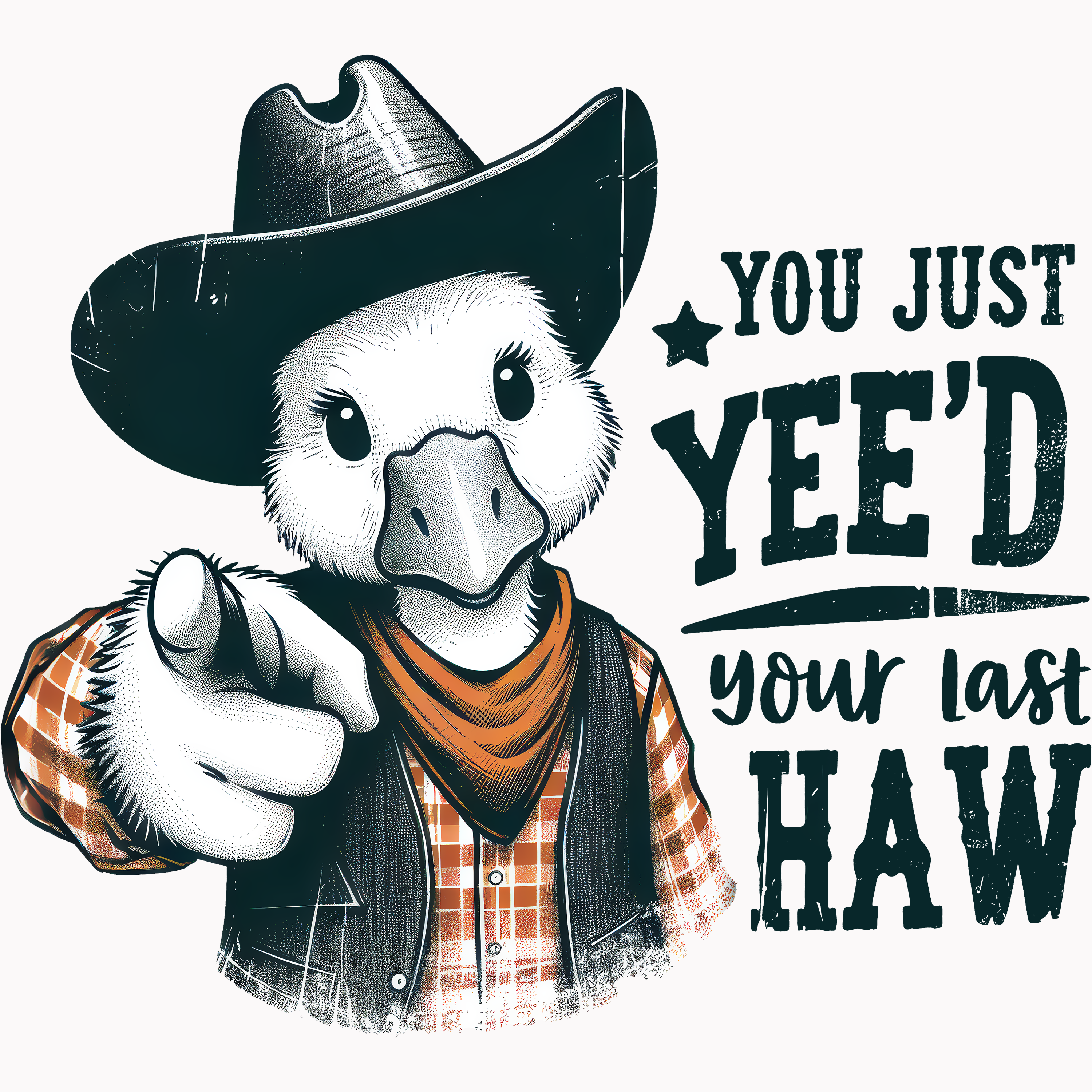 This is the ultimate warning shot for anyone who's been "yee-hawing" a little too much. The bold, distressed text "YOU JUST YEE'D your last HAW" makes this an instant classic. It's the perfect statement piece for anyone with a great sense of humor and a love for all things country!